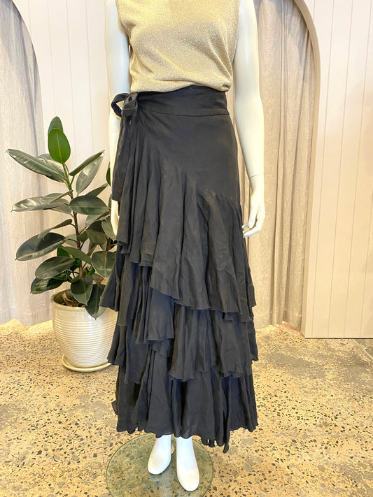 Jac and Jack Black Linen Ruffle Maxi Skirt - Size 12