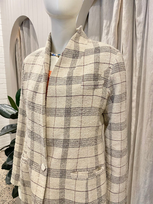 Viktoria and Woods Beige Check Williamsburg Wool Blazer - Size 2 (10)