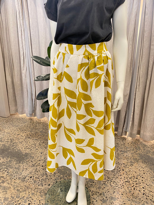 Second Female Floral Midi Skirt in Chartruse- Size S
