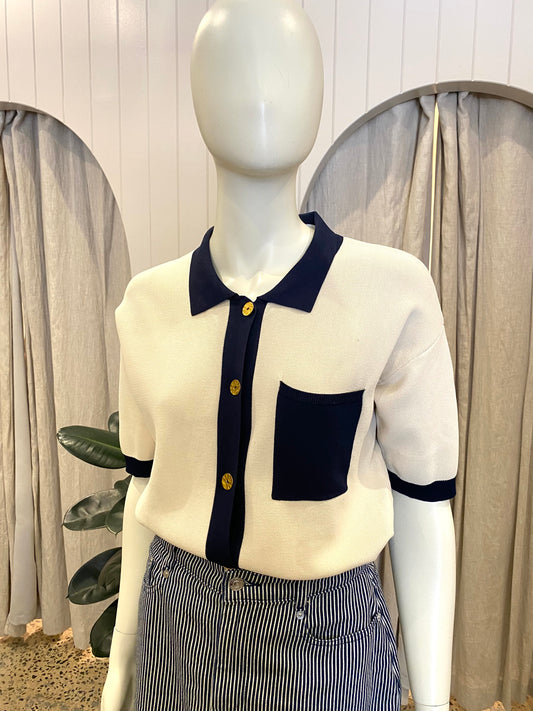 Onte Cream and Navy Crepe Shirt - Size M