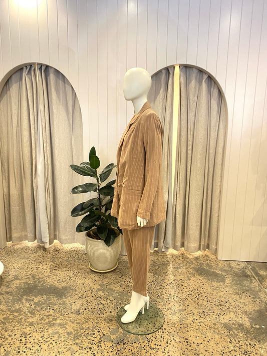 Nude Lucy Finley Pinstripe Beige Pant and Blazer Set - Size M