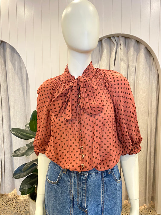 Zimmermann Espionage Neck Tie Blouse in Rosewood Dot - Size 1 (10)