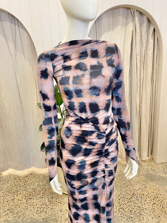 Suboo Shibori Long Sleeve Ruched Maxi Dress in Tortoiseshell