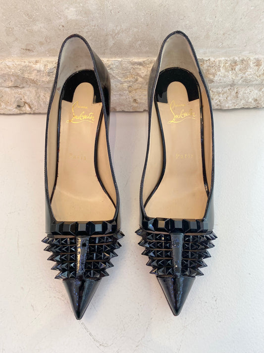 Christian Louboutin Black Patent Pyramipump - Size 38.5