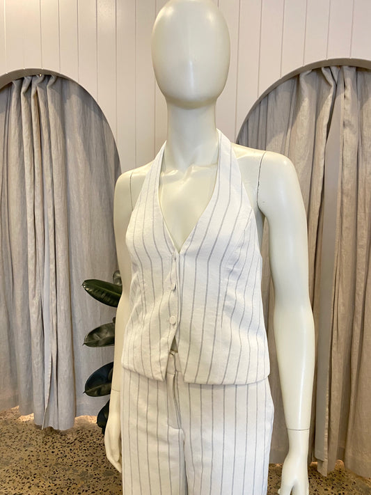 Kookai Oyster Pin Stripe Vest & Pant Set - Size 8