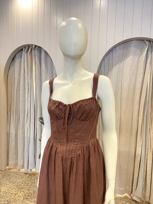 Bardot x Revolve Esra Midi Dress in Chocolate - Size 8