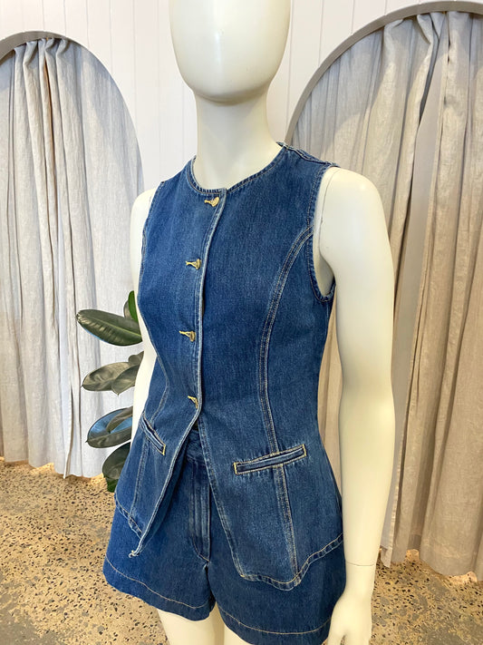 Meshki Denim Short & Vest Set in Blue - Size 8