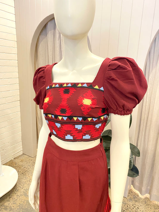 IQ Collection Burgundy Clavel Granates Skirt and Top Set - Size S