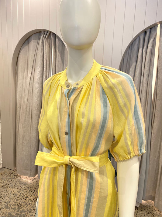 Oroton Yellow Stripe Shirt Dress - Size 14