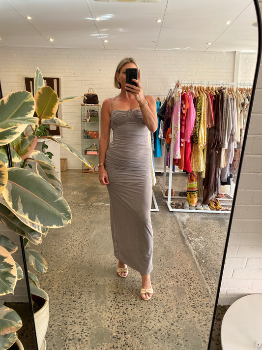 Sir Jacques Gathered Midi Dress In Slate - Size 3 (10/12)