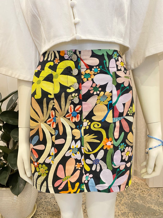 Kuwaii Black Floral Mini Skirt - Size 10