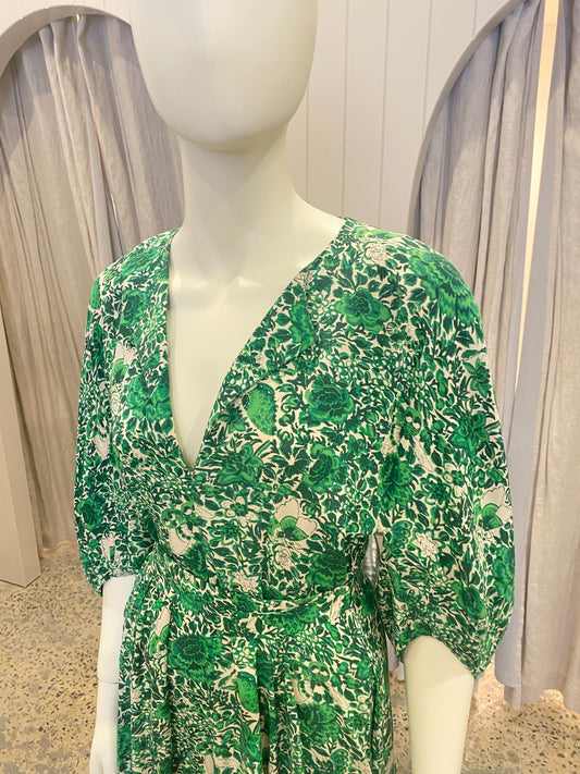 Scanlan Theodore Green Silk Floral Midi Dress - Size 8