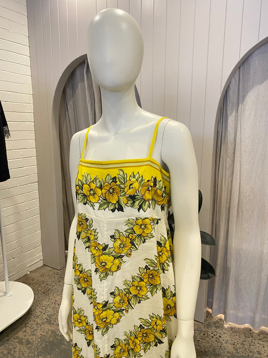 Alemais Gisela Floral Linen Midi Dress - Size 16