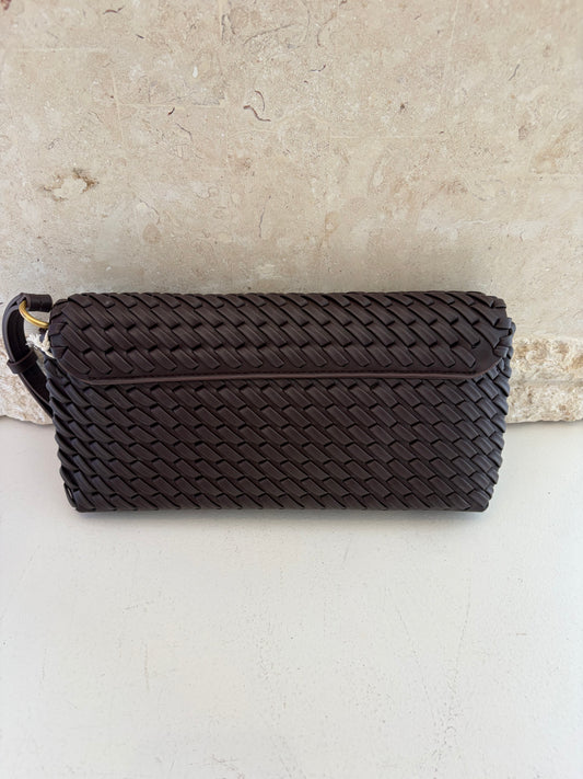 Zara Chocolate Braided Faux Leather Clutch
