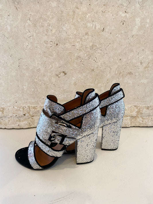 Givenchy 'Victoria Bike Glitter' Sandals in Silver - Size 38.5