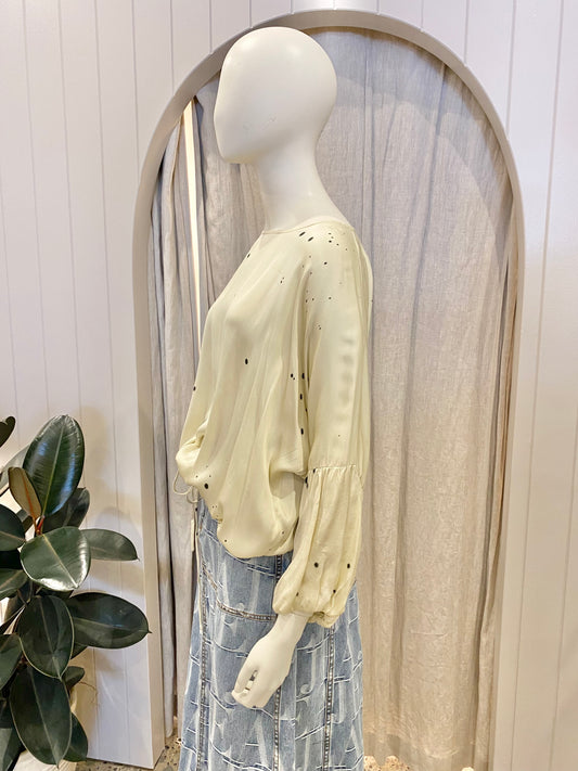 Rabens Saloner Cream and black splotched blouse - Size S (10)