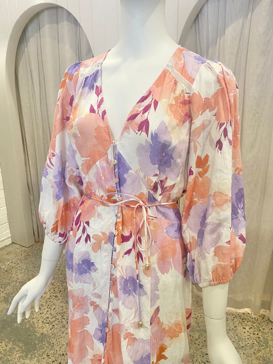 Kivari Aster Midi Dress in Pastel Floral - Size 12