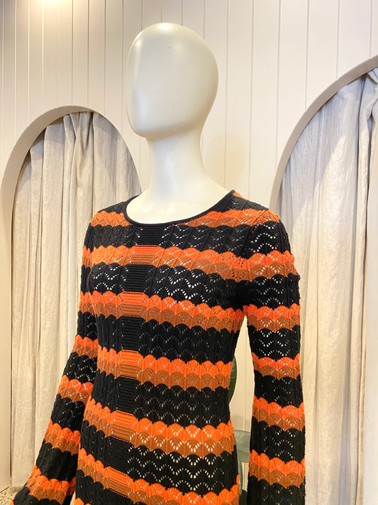 Shona Joy Black and Orange Isla Crochet Low Back Maxi Dress - Size S