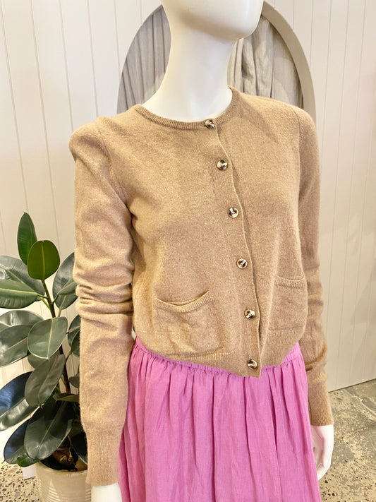 White Story Camel Cashmere Cardigan - Size Small (8-10)