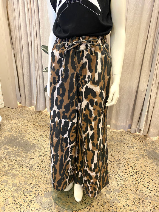 Aje Studio Sienna Leopard Print Denim Pants - Size 12