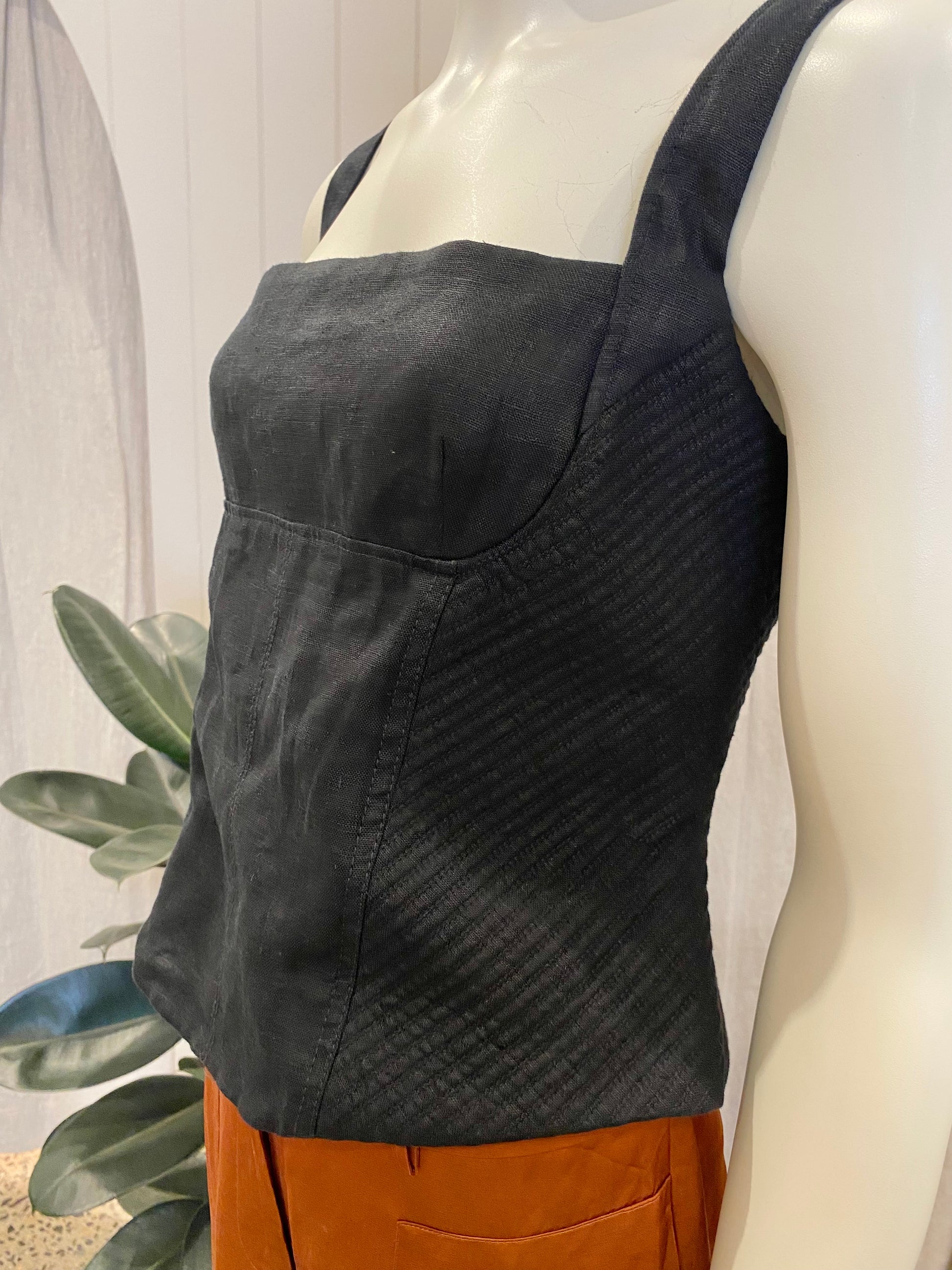 Description : - Fitted bodice - Quilted chevron side panels - Thick straps - Corset style - Rear contrast gold zip