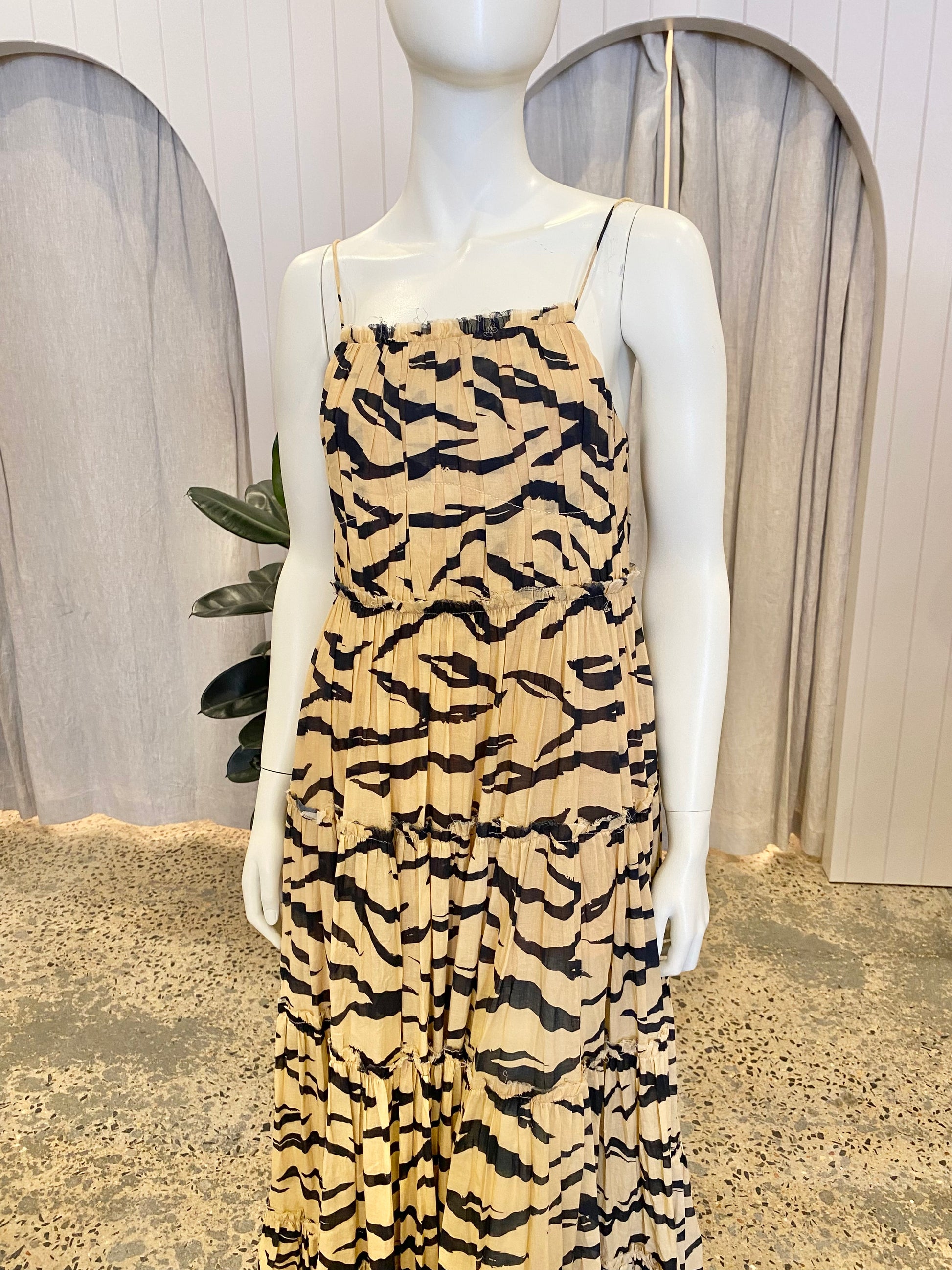 Description : - Maxi length - Zebra print - Spaghetti straps - Tiered panels - Side pockets - Tagged a size 4 but could fit a 6 also