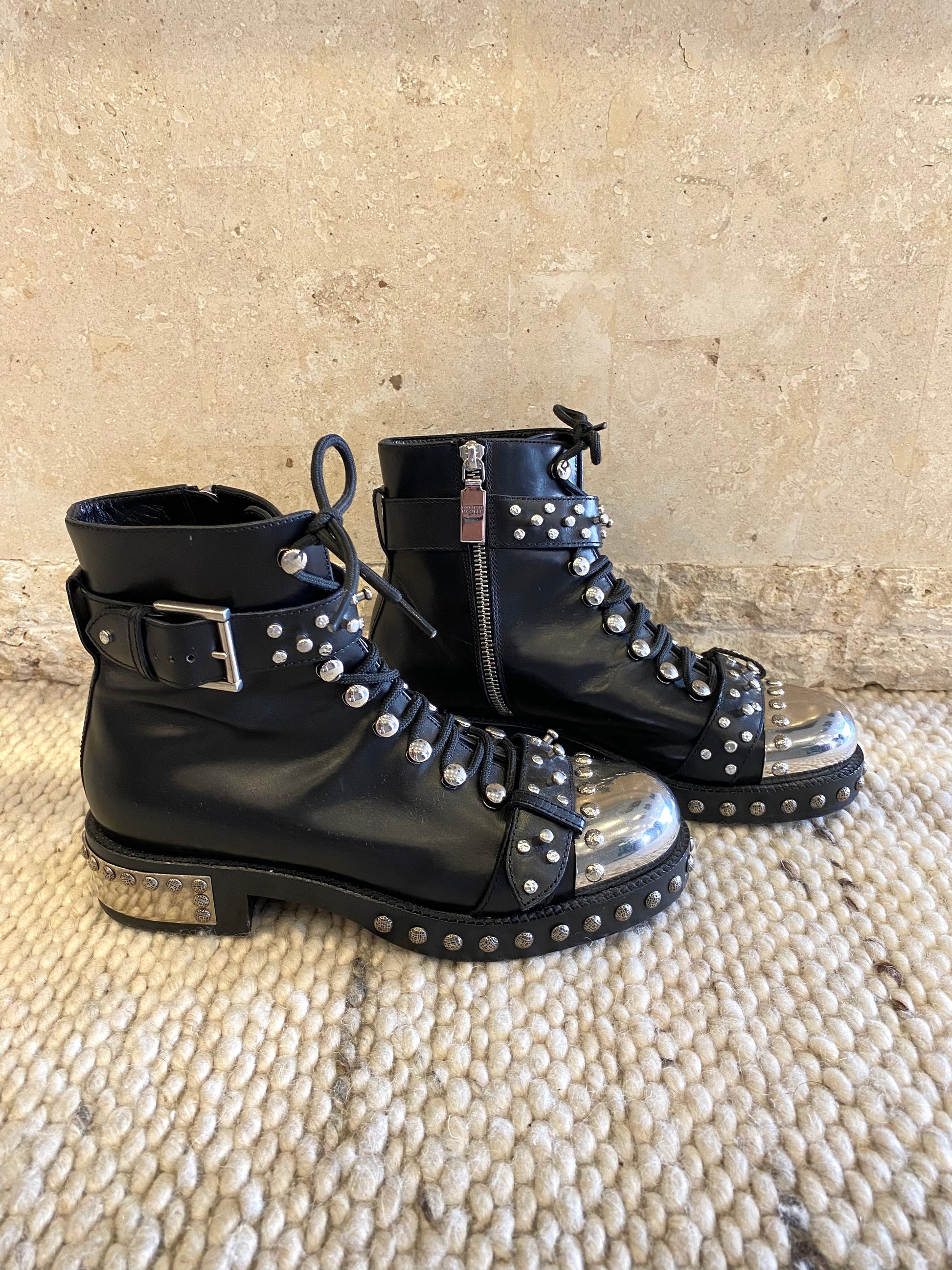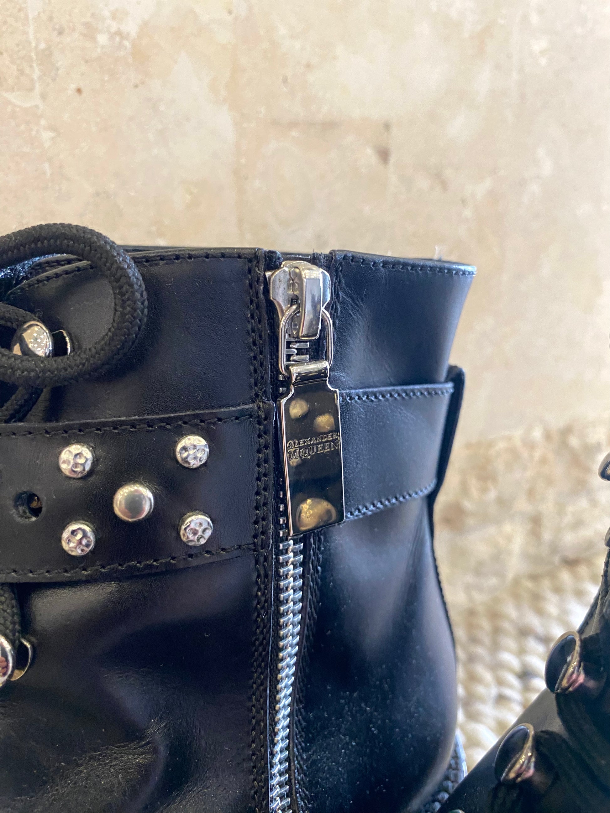 Alexander McQueen Hobnail Studded Combat Boots in Black - Size 37
