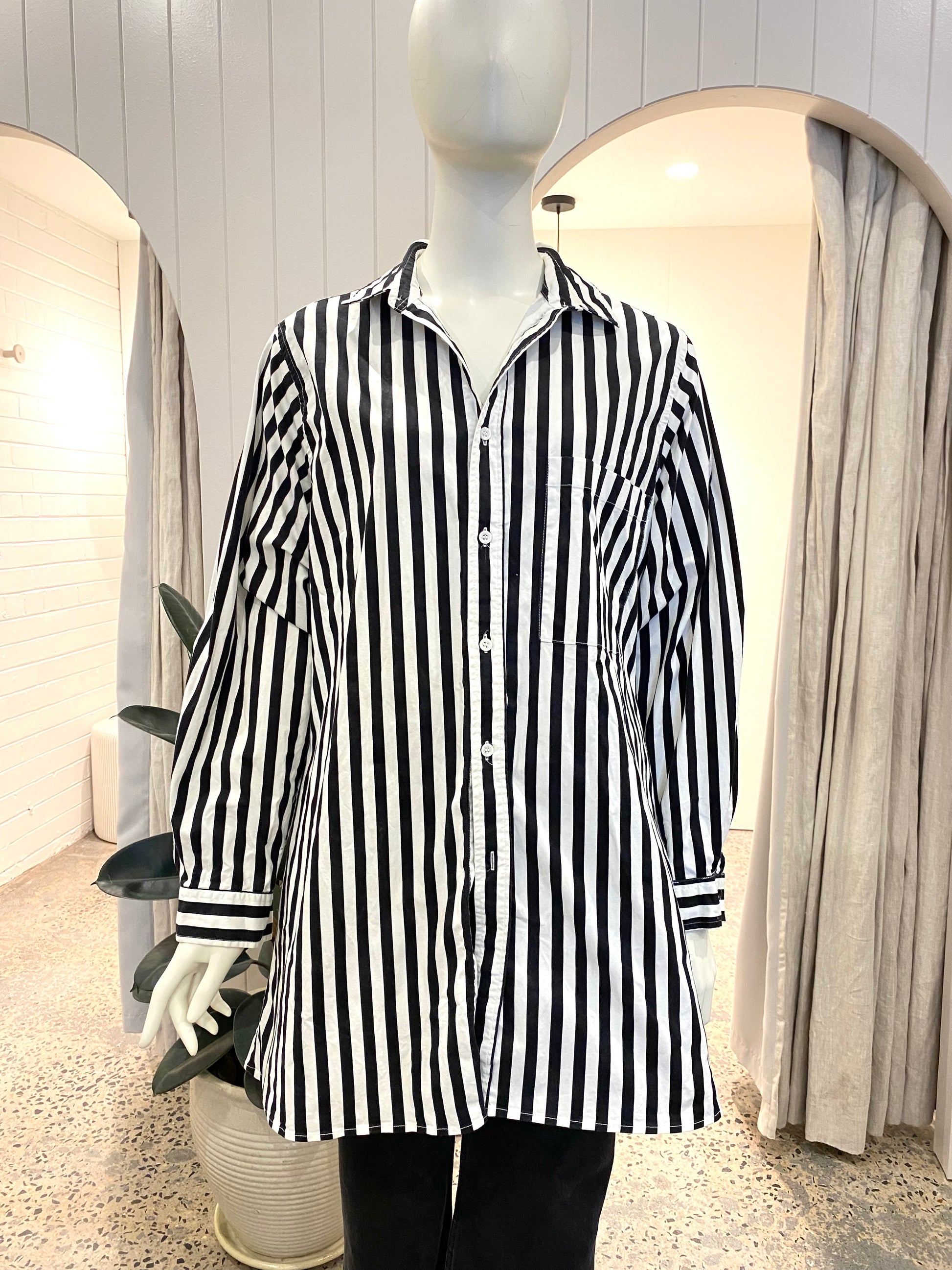 BLANCA Boyfriends Shirt in Black/White stripe - Size 12