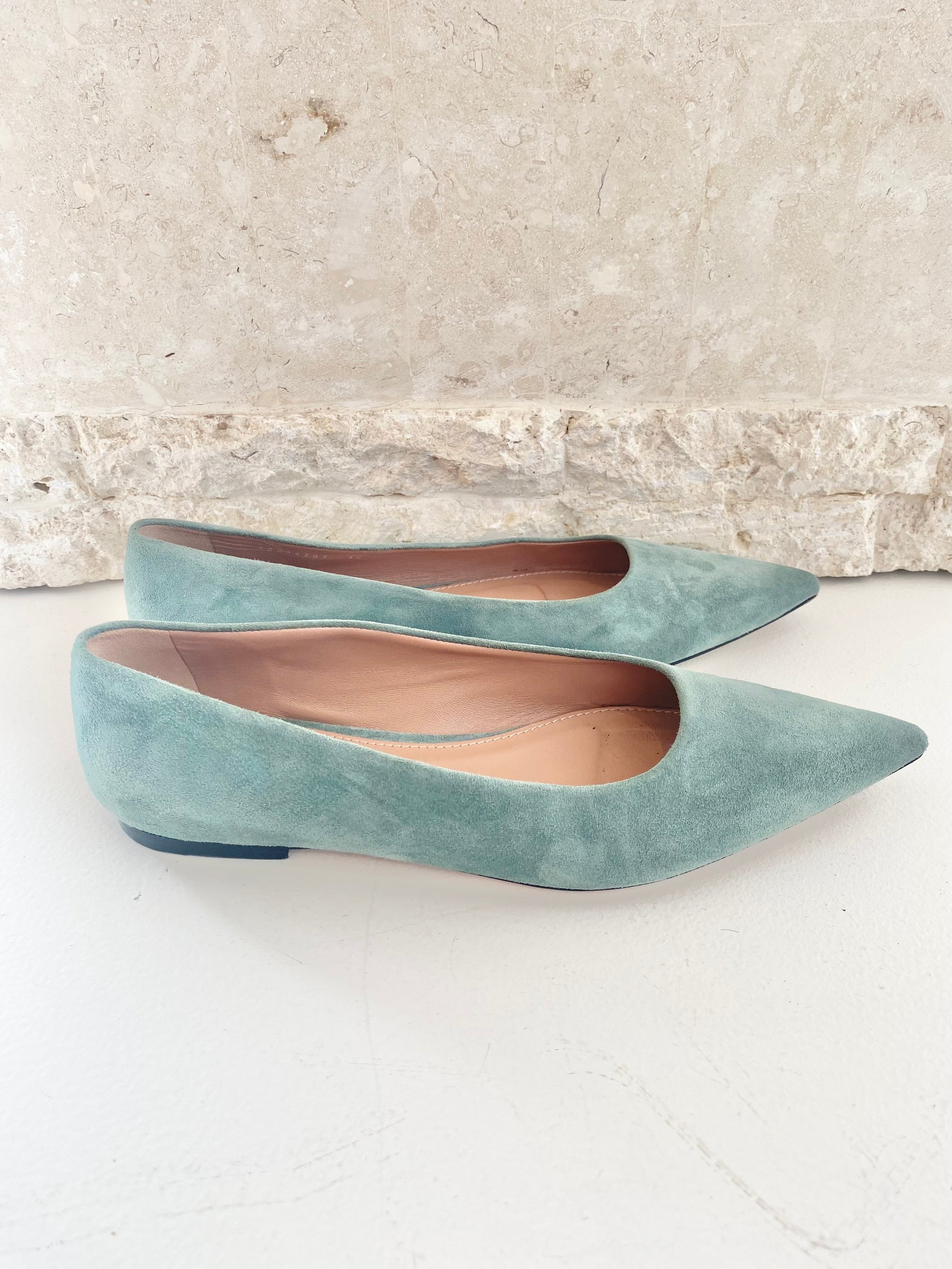 Hugo Boss Suede Ballet Flats in Sage - Size 38