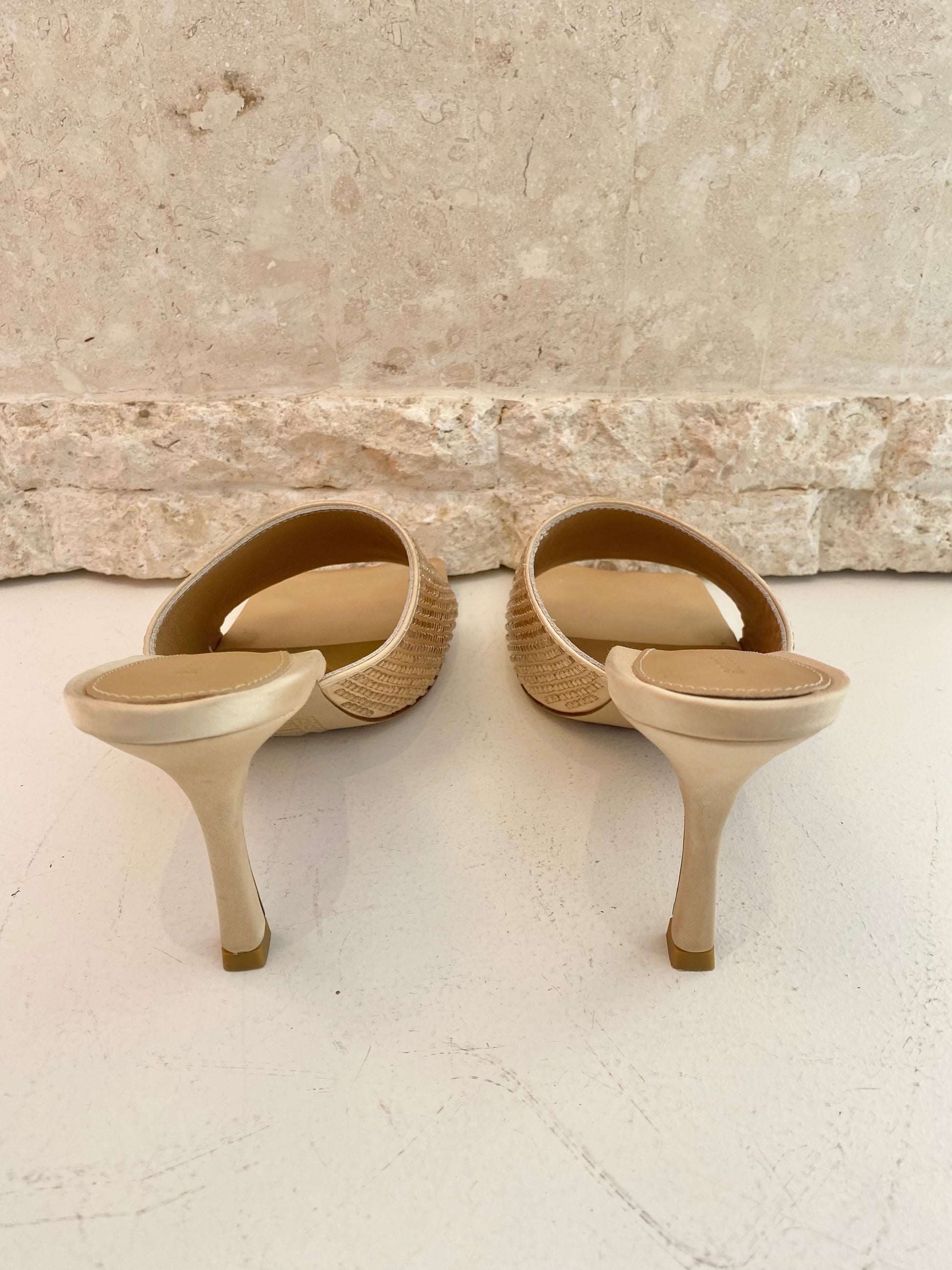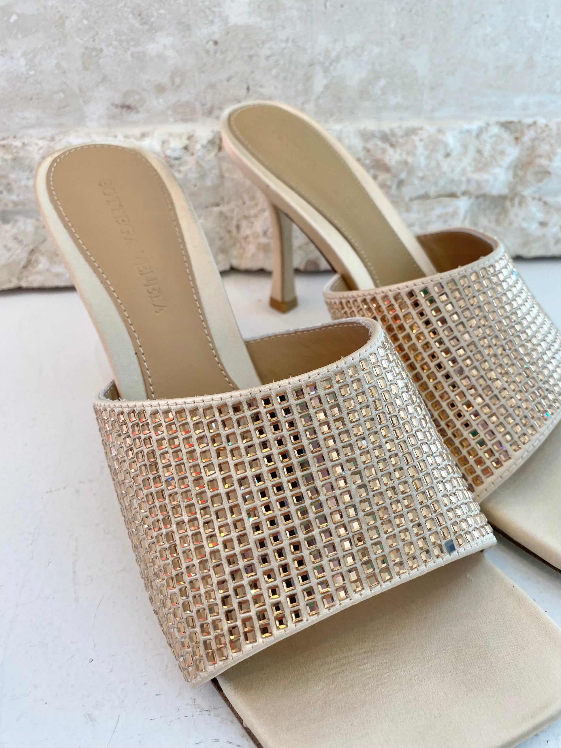 Bottega Veneta Champage Square Toe Mules - Size 40