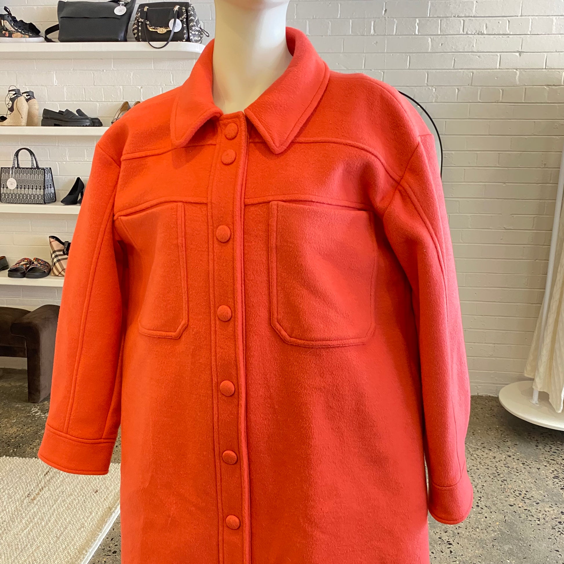 Description : Hot pink wool blend coat with pockets and snap buttons.