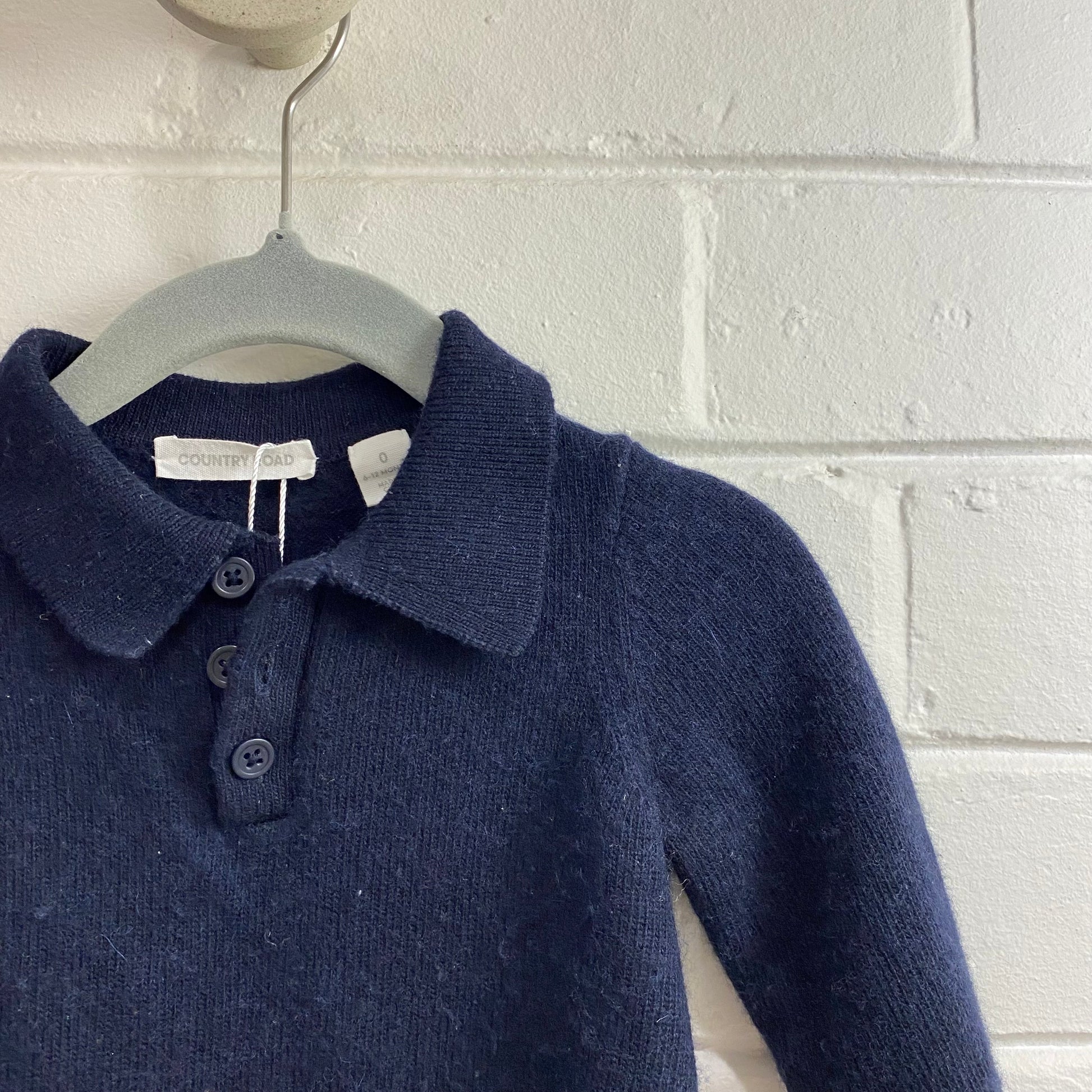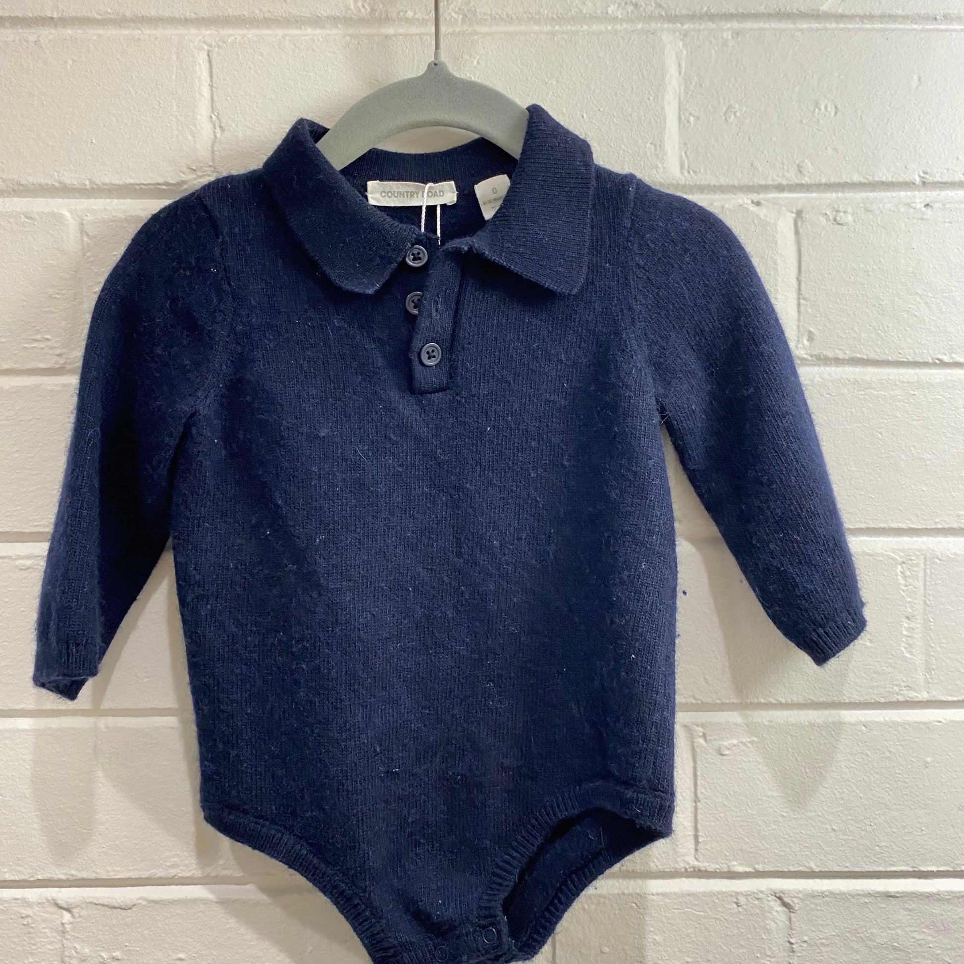 Country Road Polo Knit Long Sleeve Bodysuit in Navy - Size 0 (6-12mth)