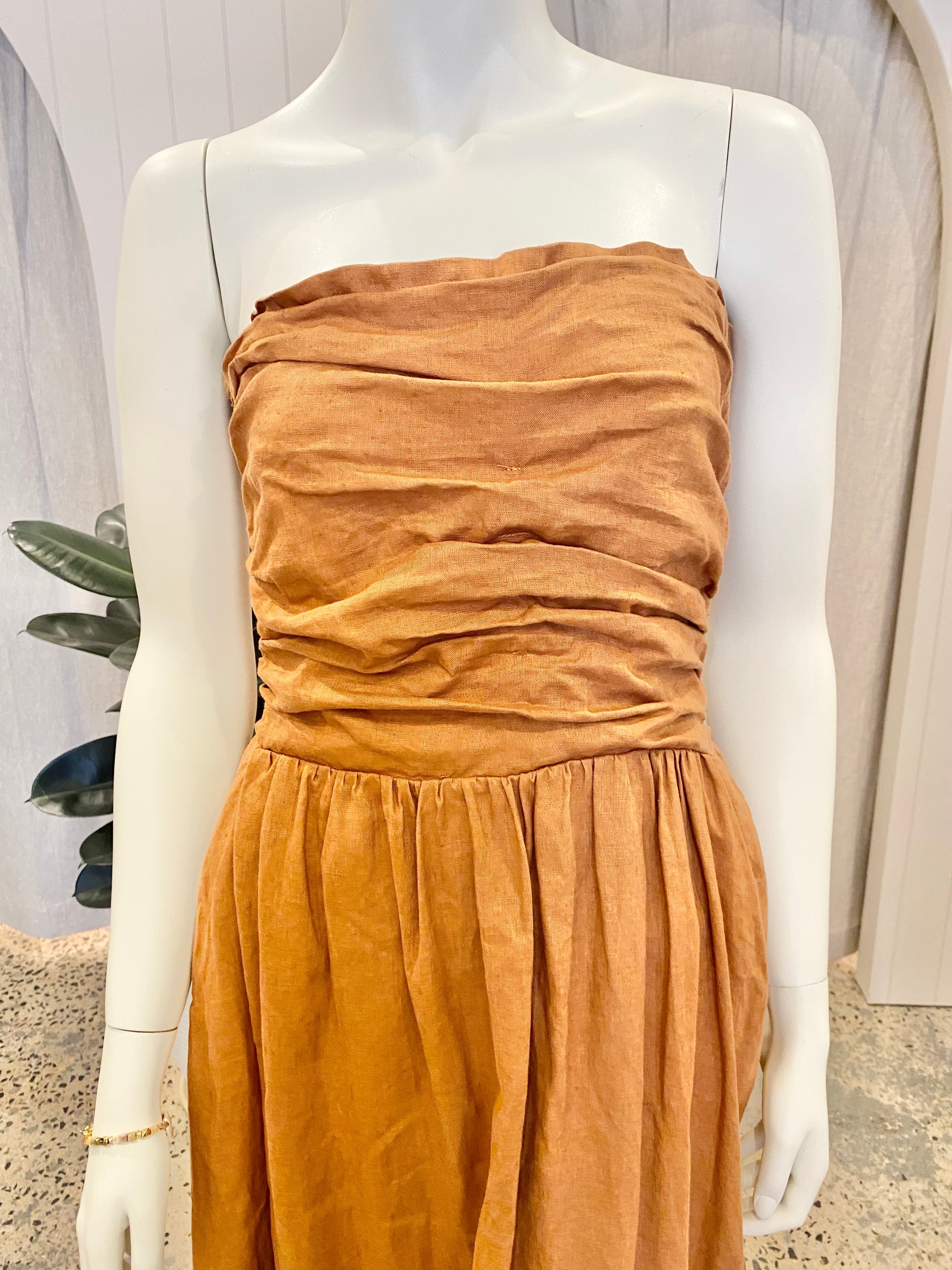 Dissh 'Lexi' Spice Linen Midi Dress in Tan - Size 12