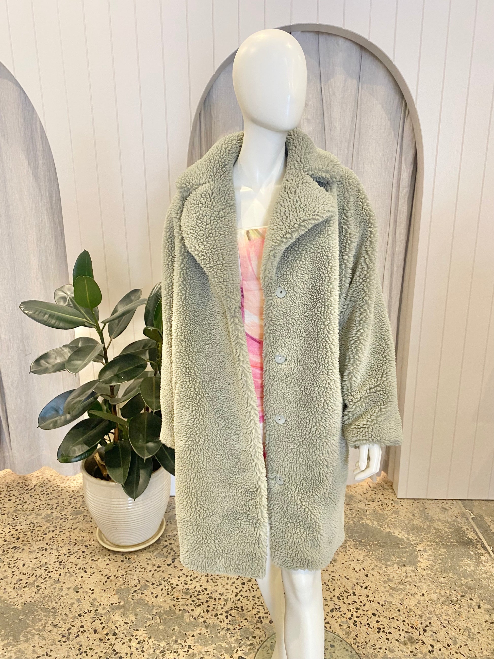 Friends with Frank 'Harriet' Teddy Coat in Sage - Size M/L (12-14)