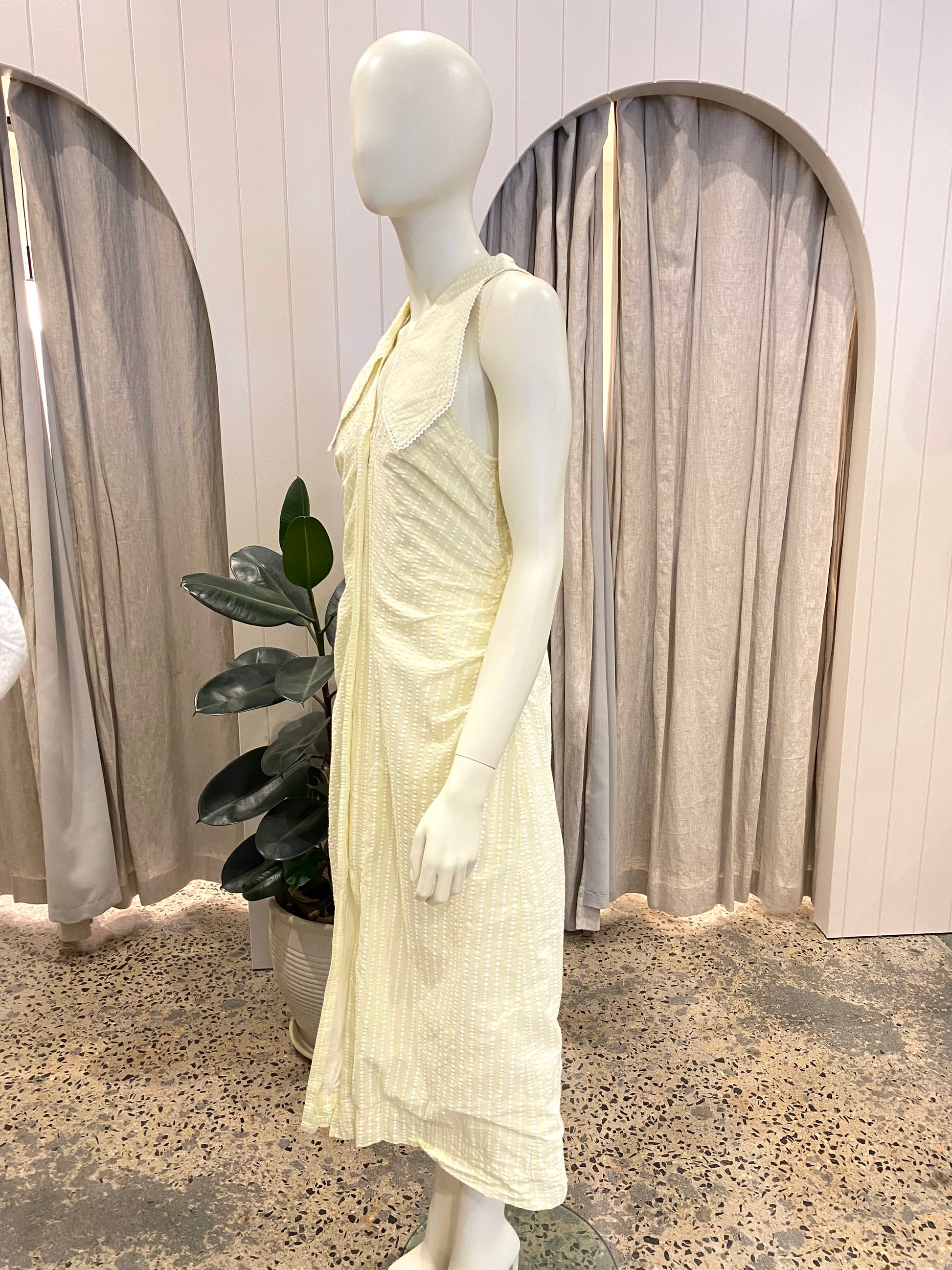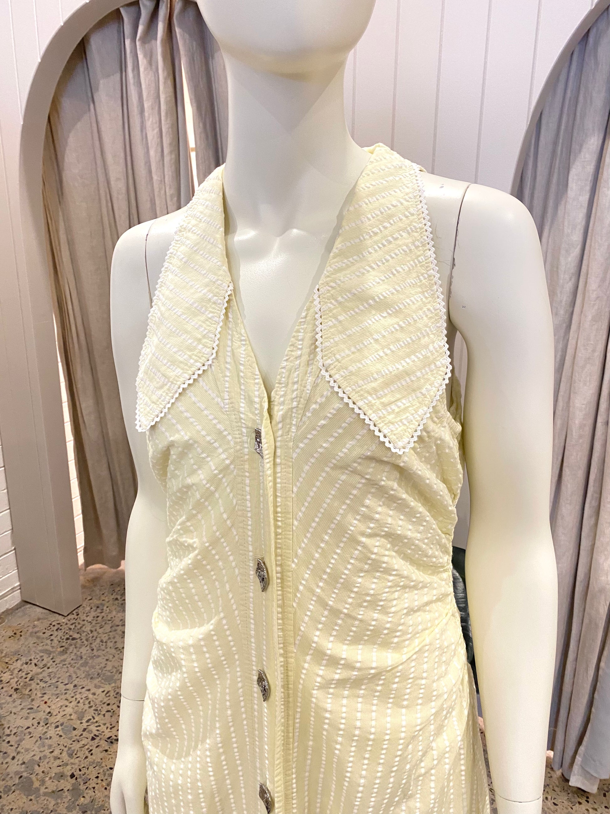 Ganni Yellow Seersucker Midi Dress - Size 40 (8 - 10)