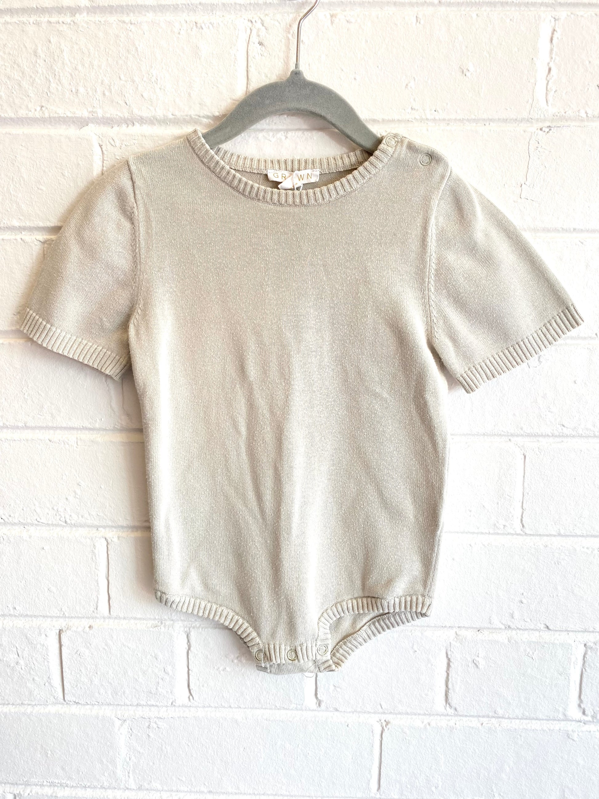 Description : light sage knit onesie, roudn neckline, short sleeves