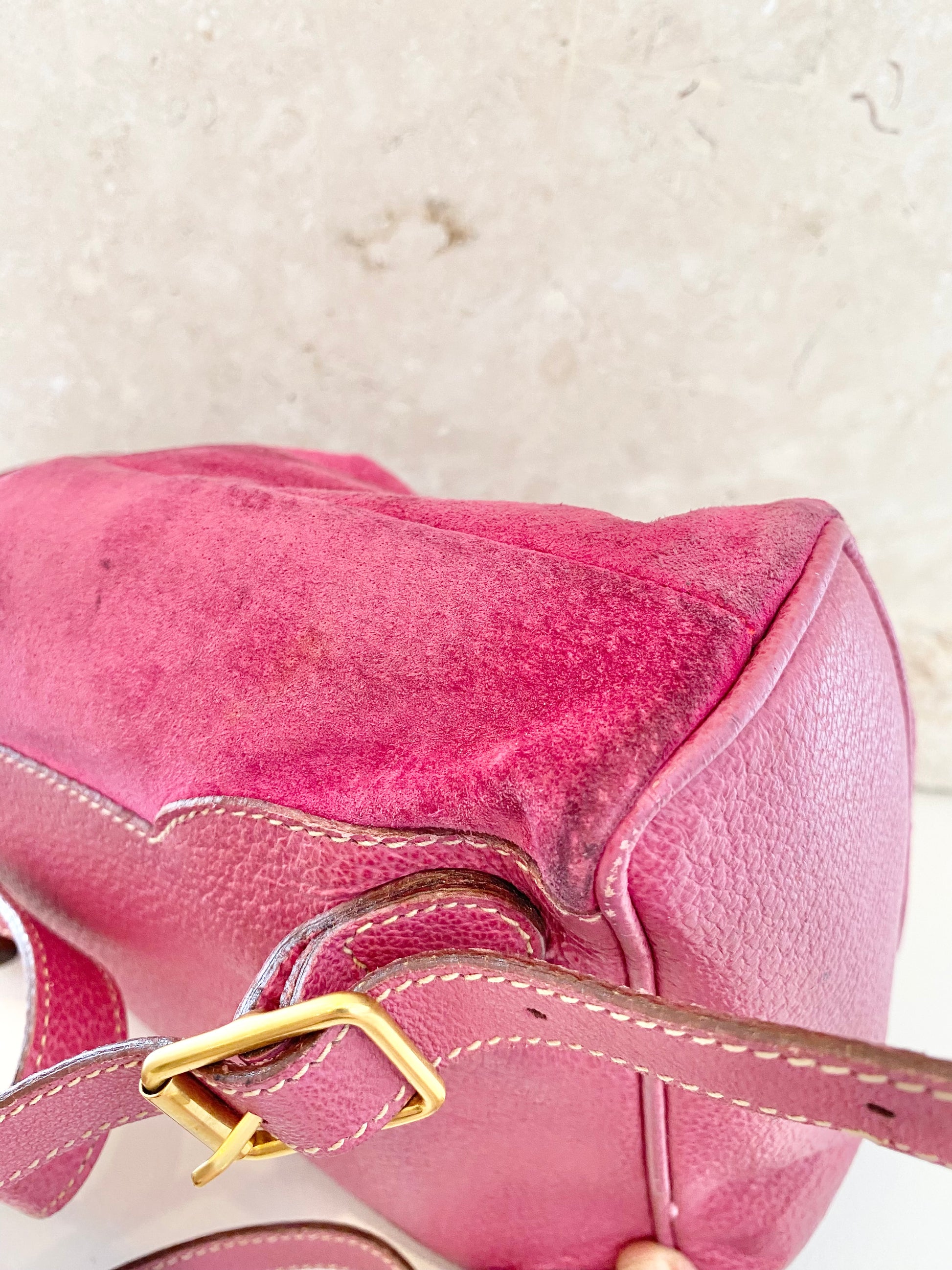 GUCCI Pink Suede Bamboo Drawstring Backpack