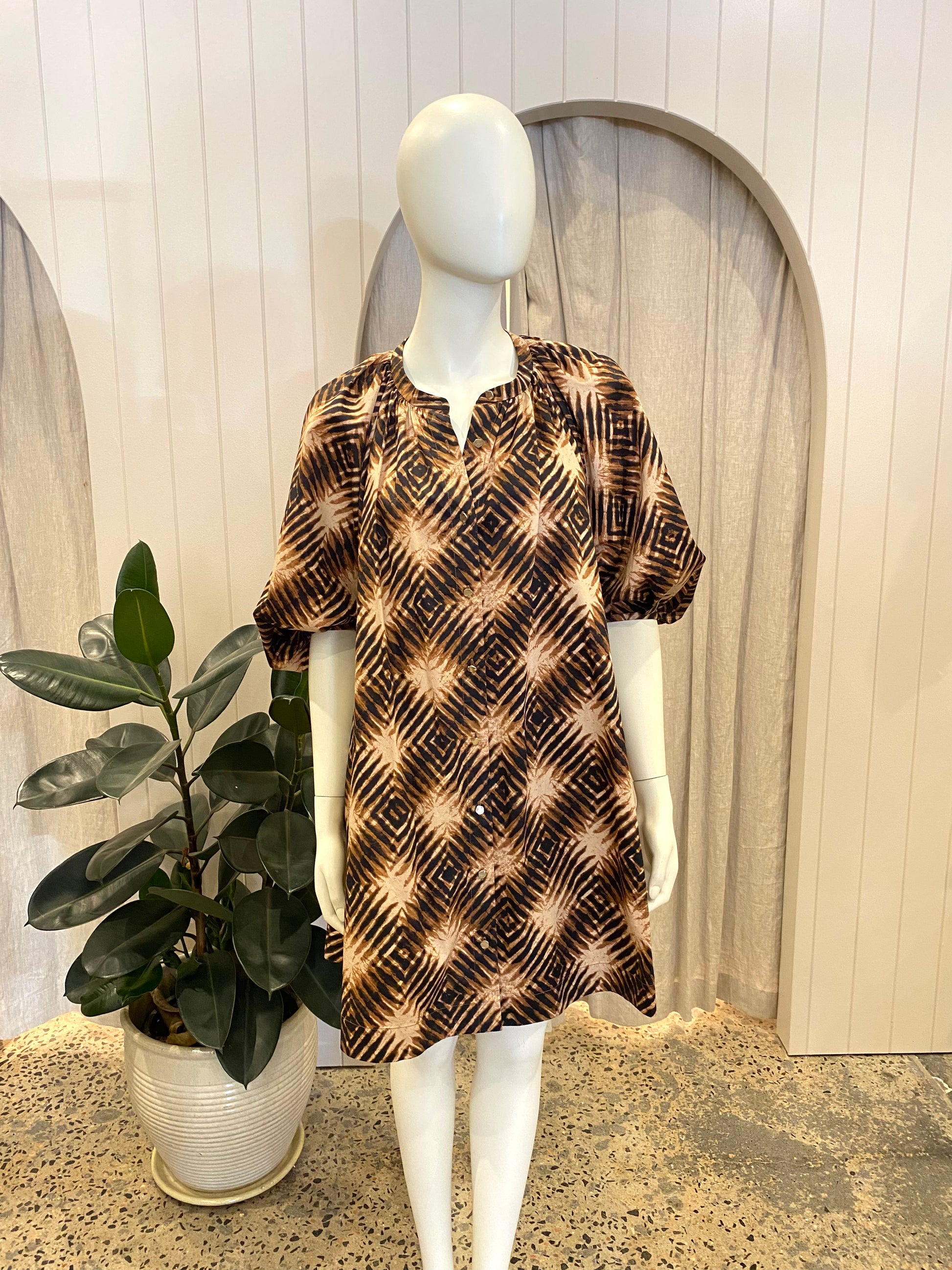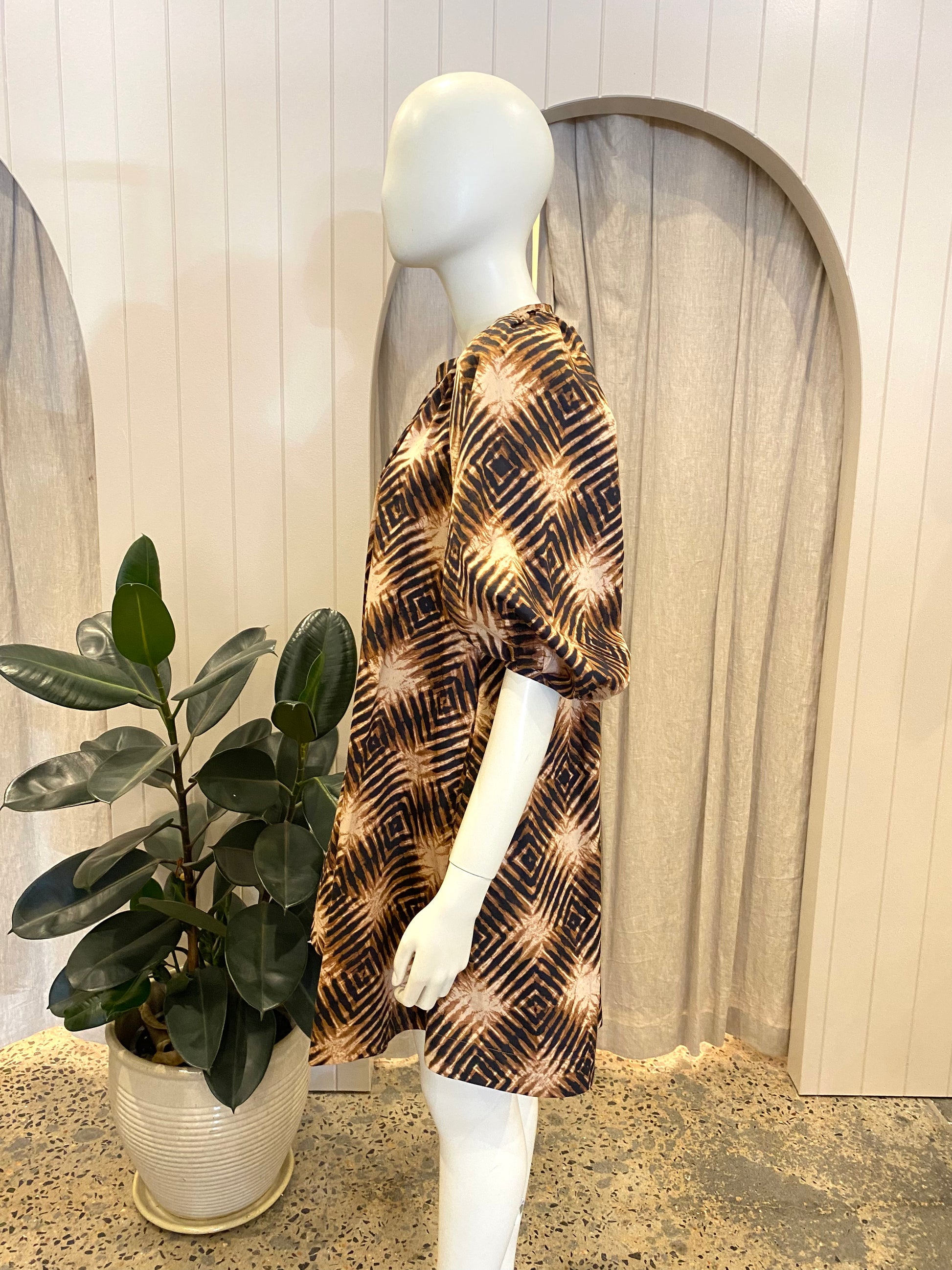 Husk Tan and Black Cotton Midi Dress - Size XS