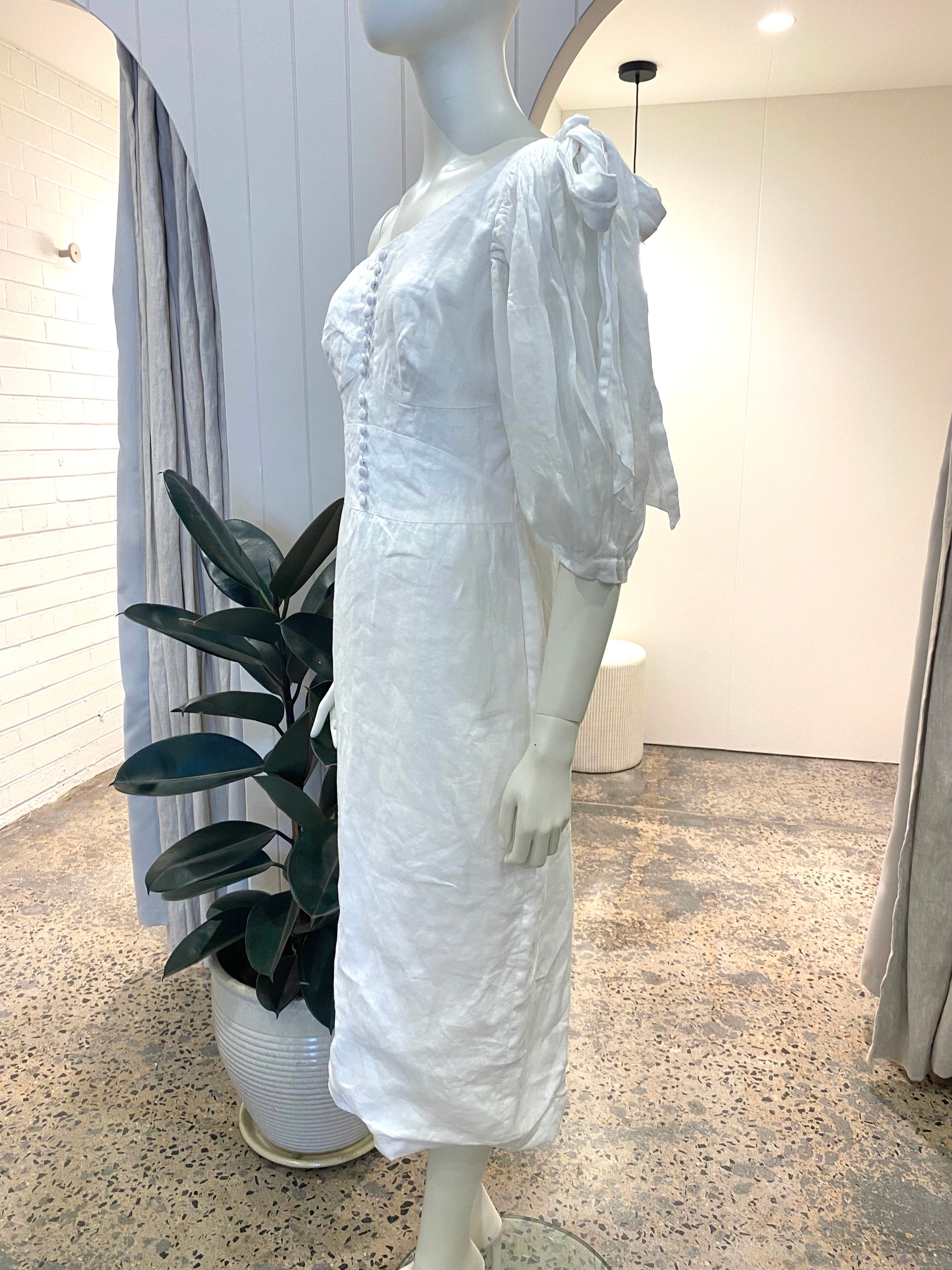 Material : MAIN: 100% Linen Batiste BUTTONS: 100% Linen Batiste LINING: 100% Viscose Voile