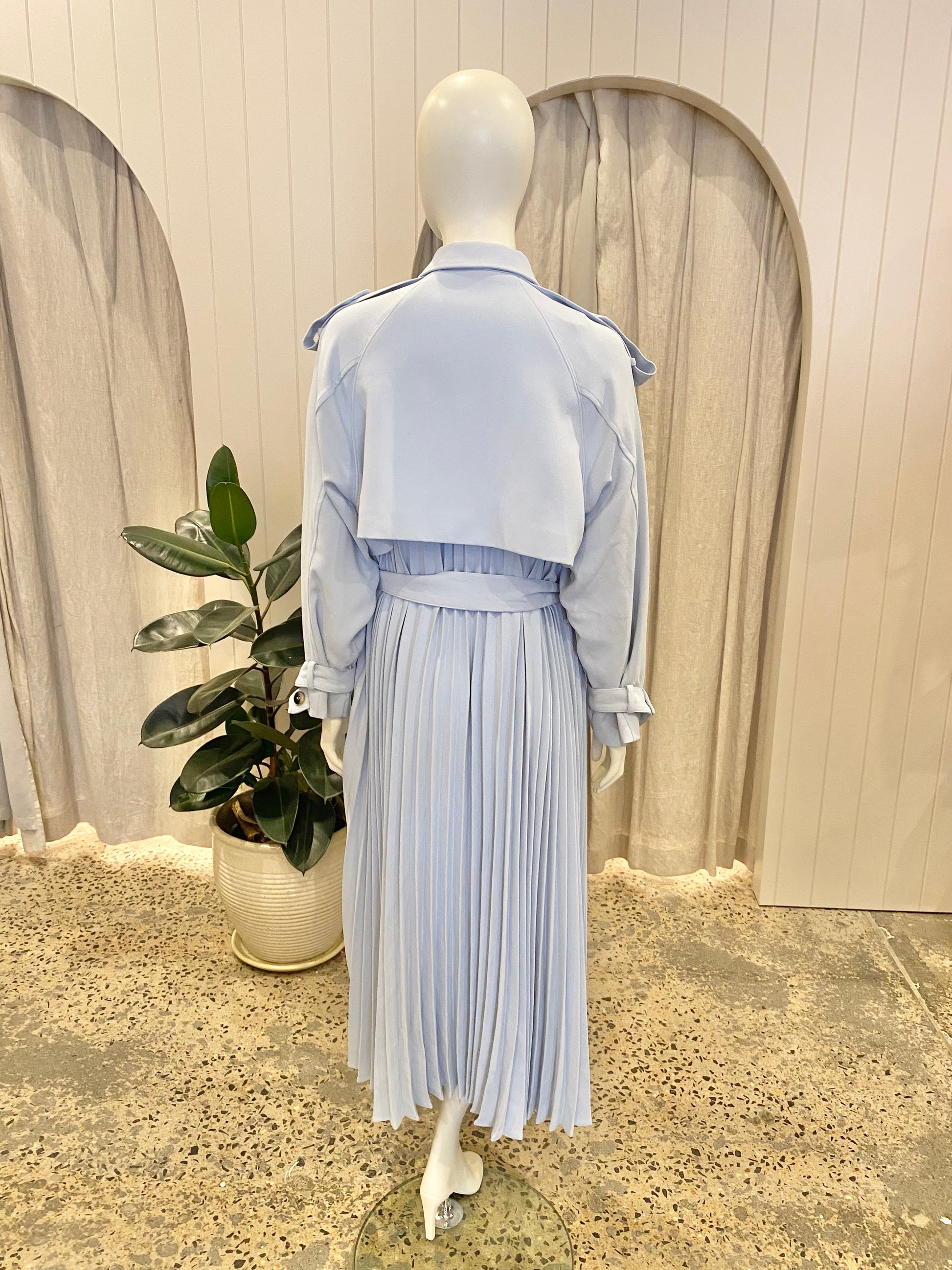 Karen Millen Blue Soft Pleated Trench Coat - Size 18