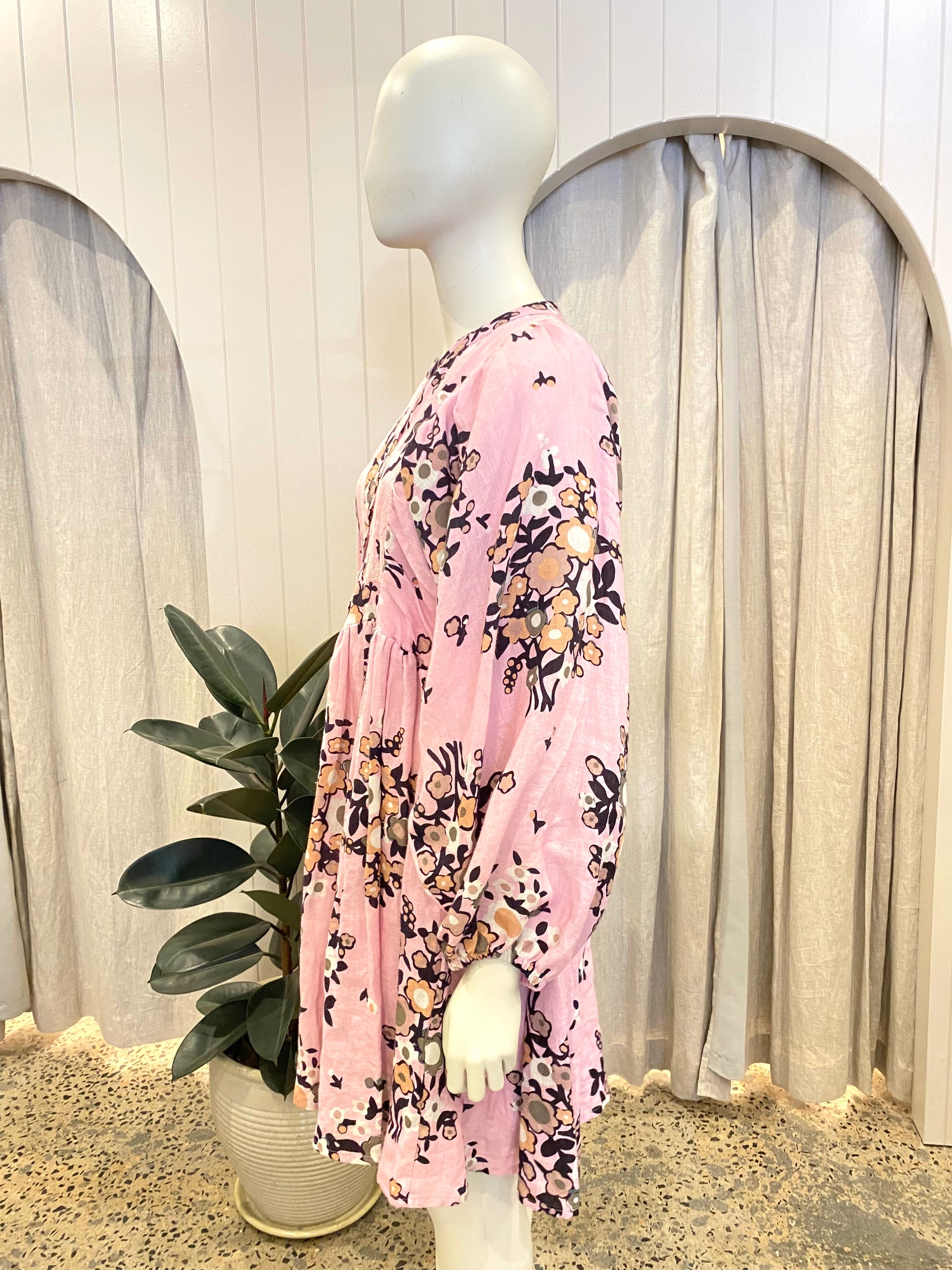 Description : - Mini length - Oversized relaxed fit - Long sleeve with elastic cuff - Button down front