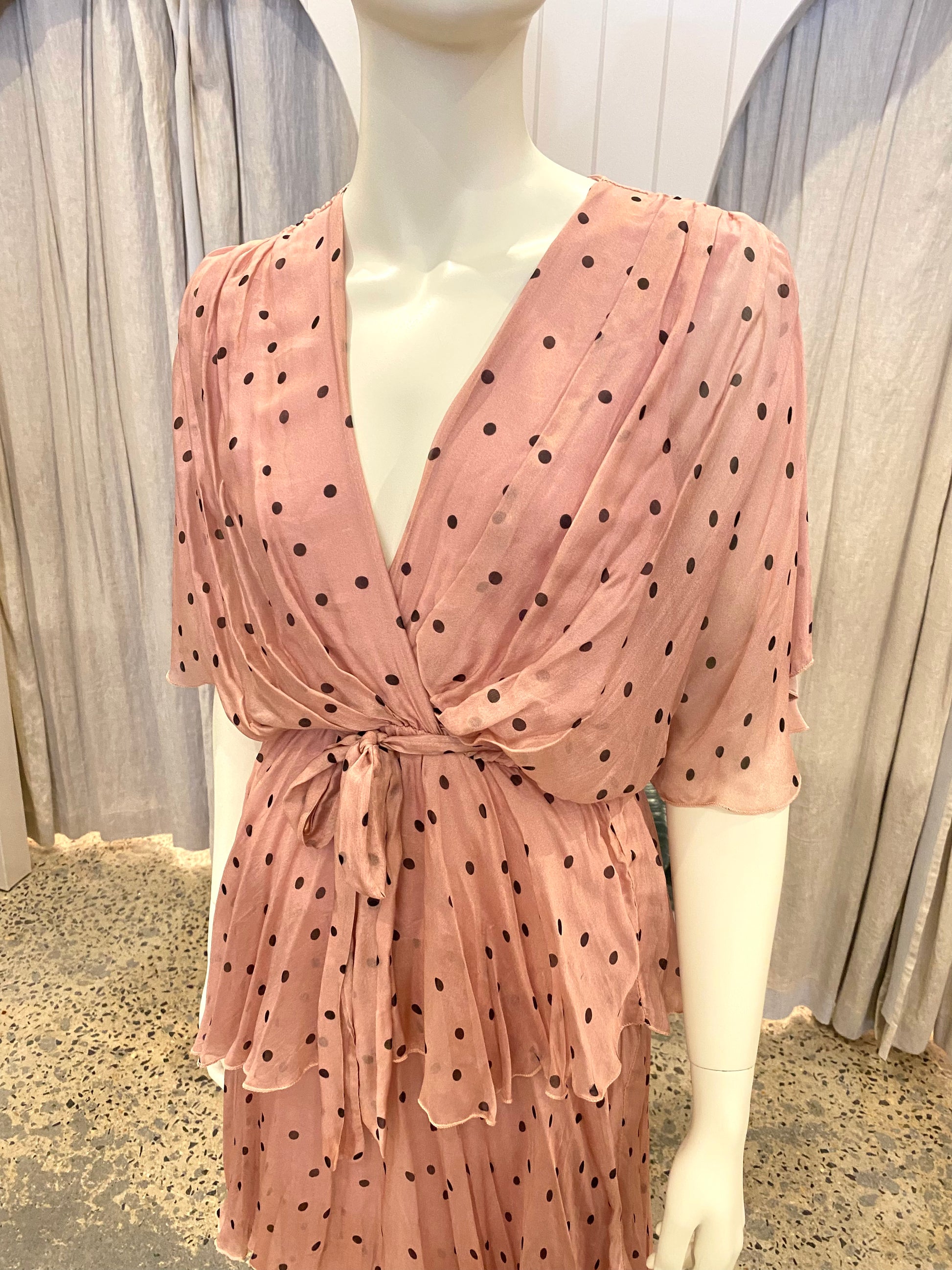 La Strada Pink Silk Blend Polka Dot Midi Dress - Size S