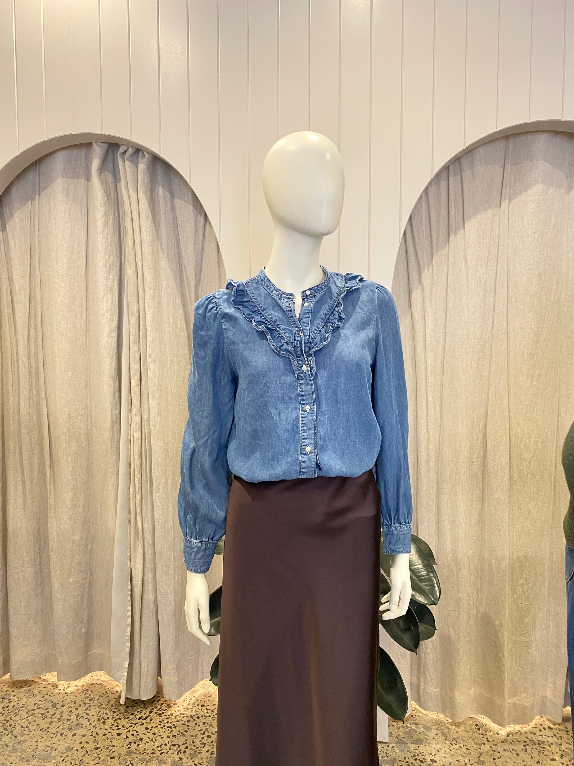 Levi's Ruffle Detail Denim Shirt - Size Small (8-10)