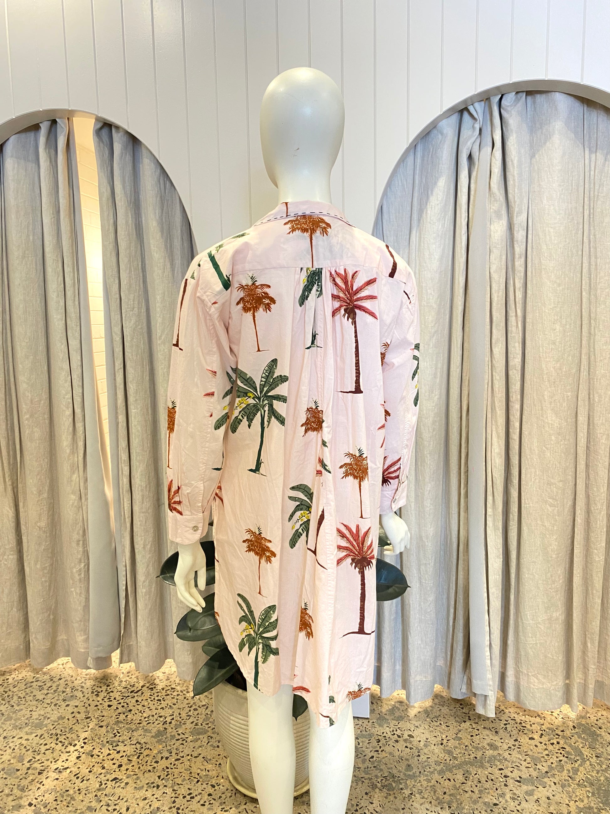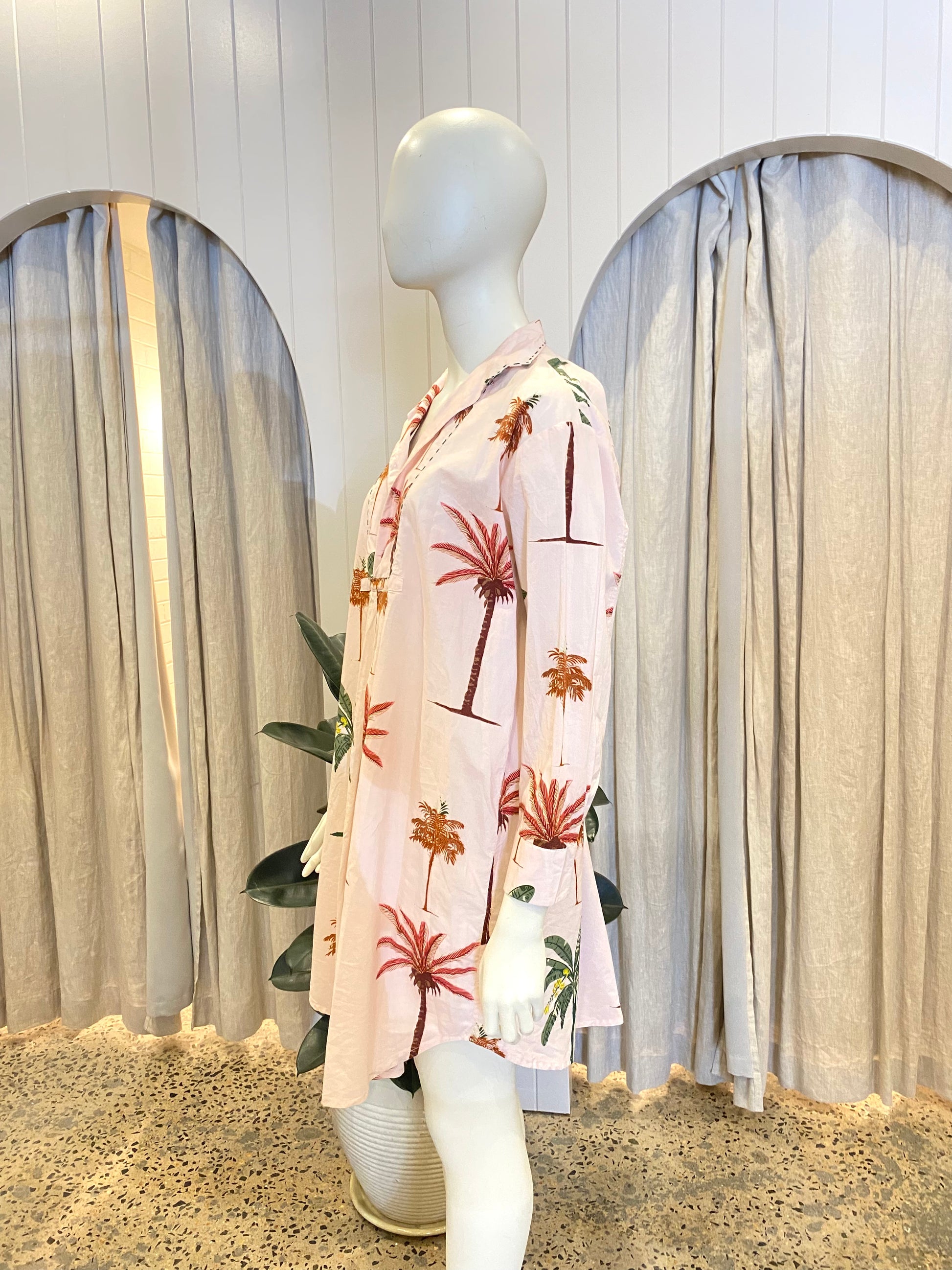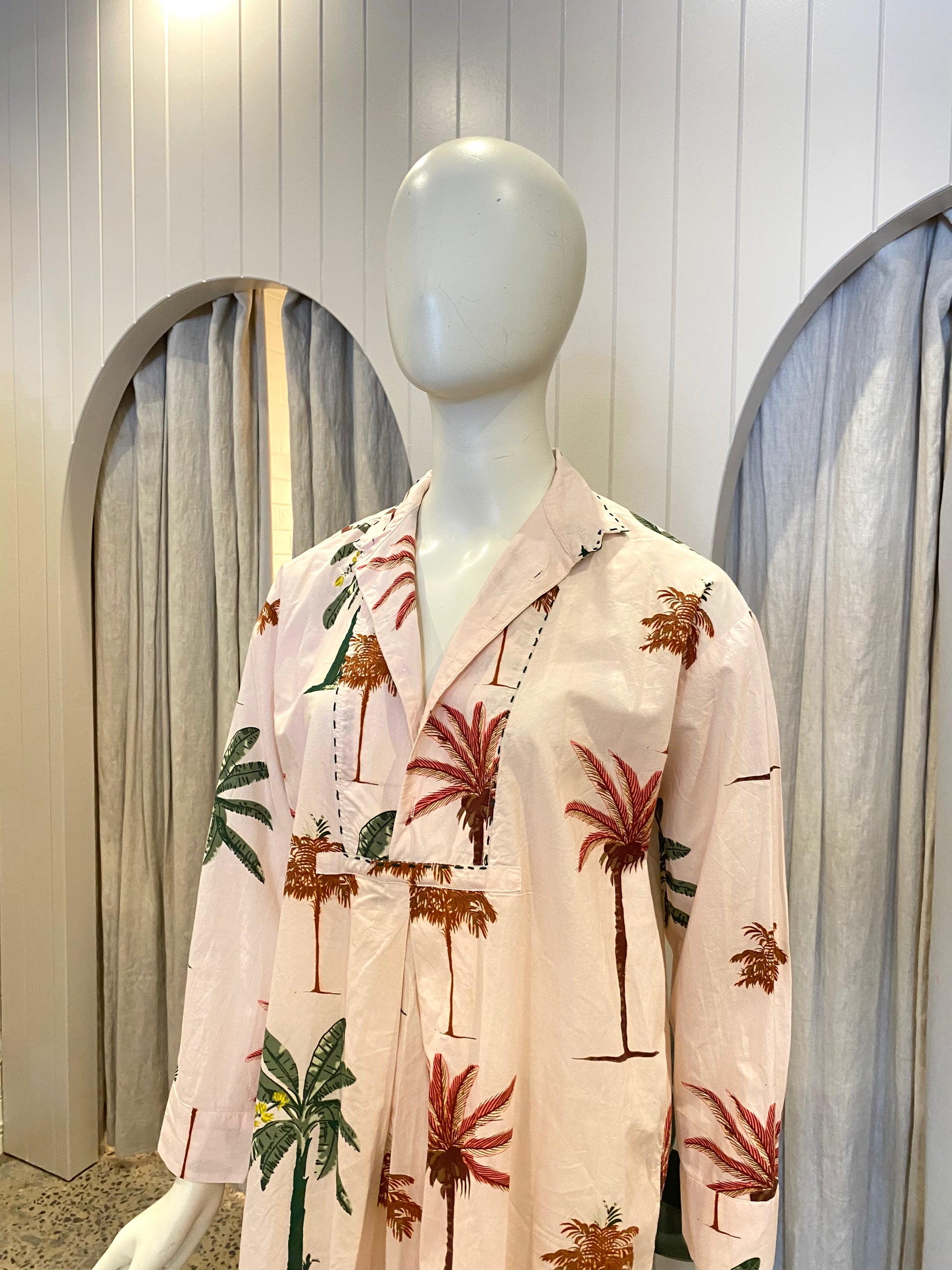 Description : floral midi dress, light pink, chest button down, long sleeves