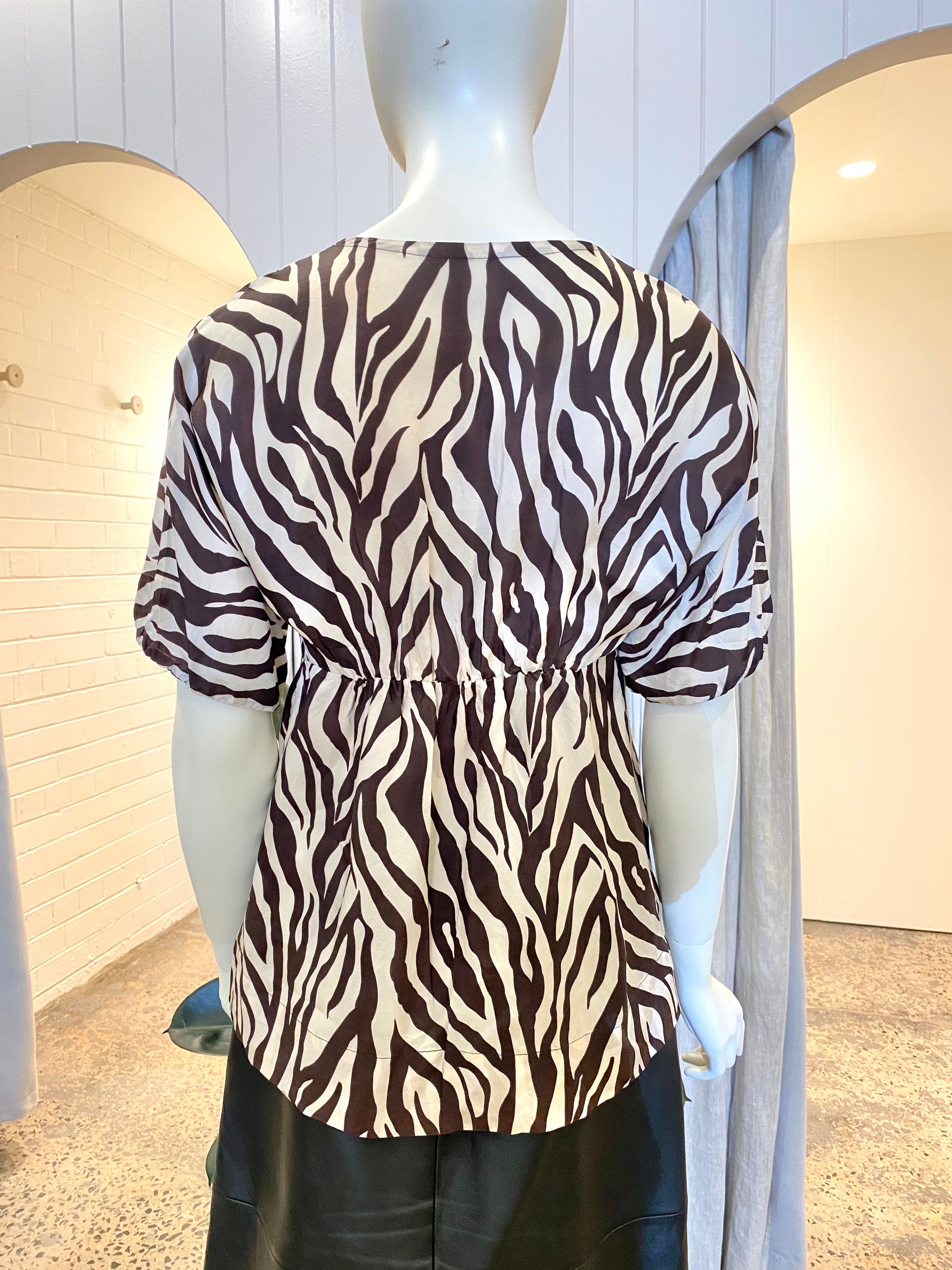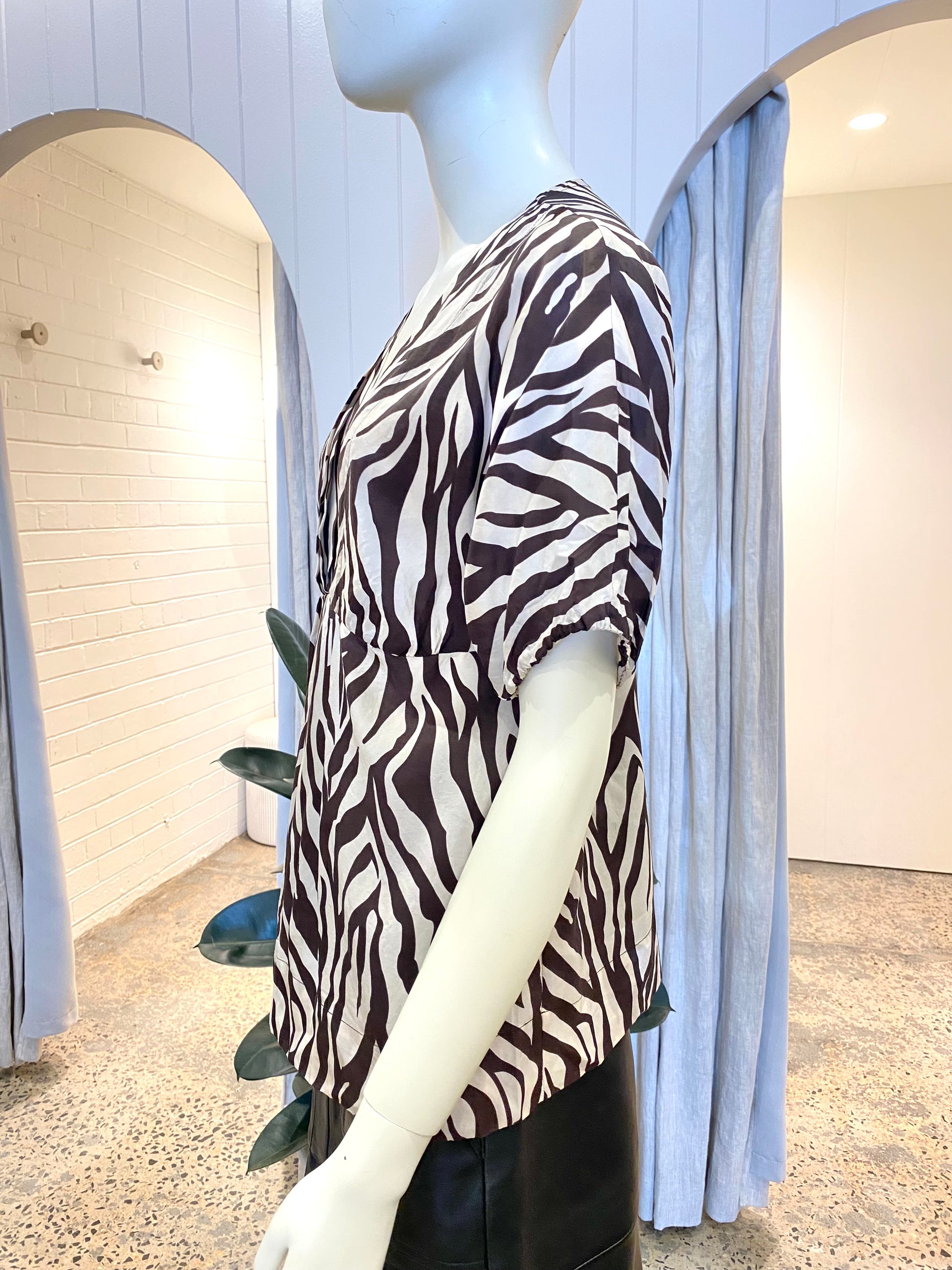 Massimo Dutti Zebra Print Silk Blouse - Size 12