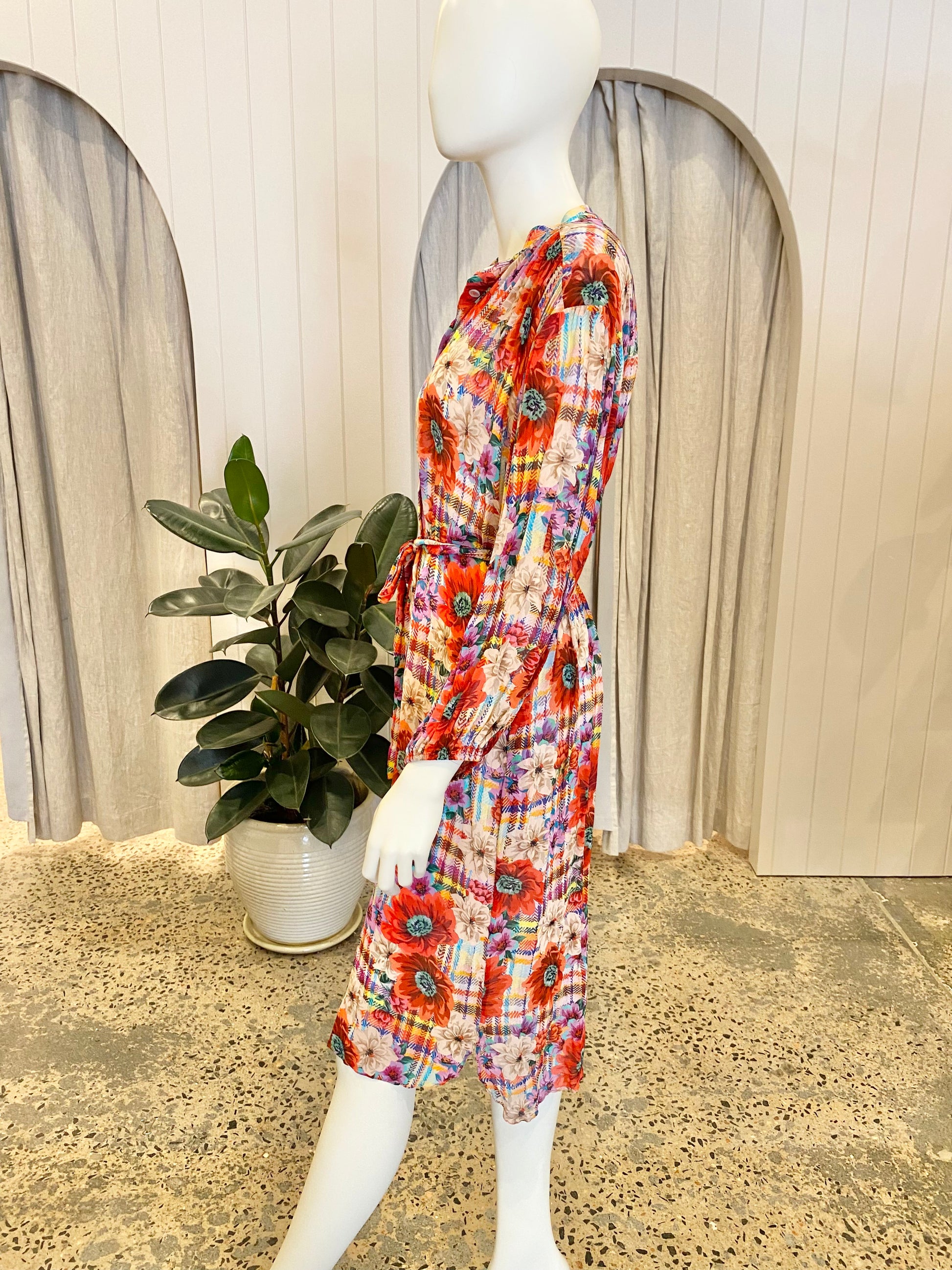Megan Park Gingham Floral Midi Dress - Size L (12-14)