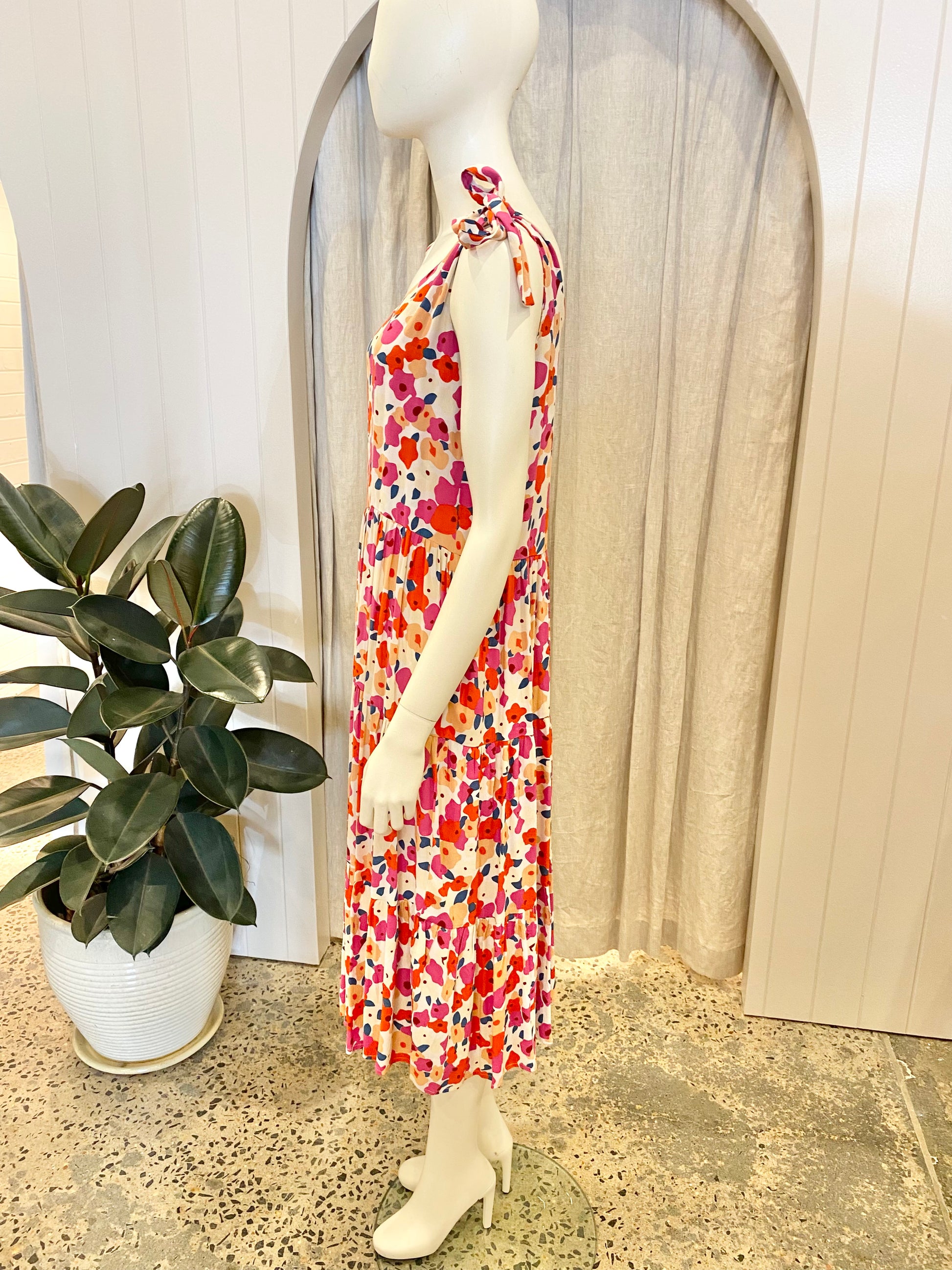 Description : - Tie up straps - Midi length - Round neckline - Tiered skirt
