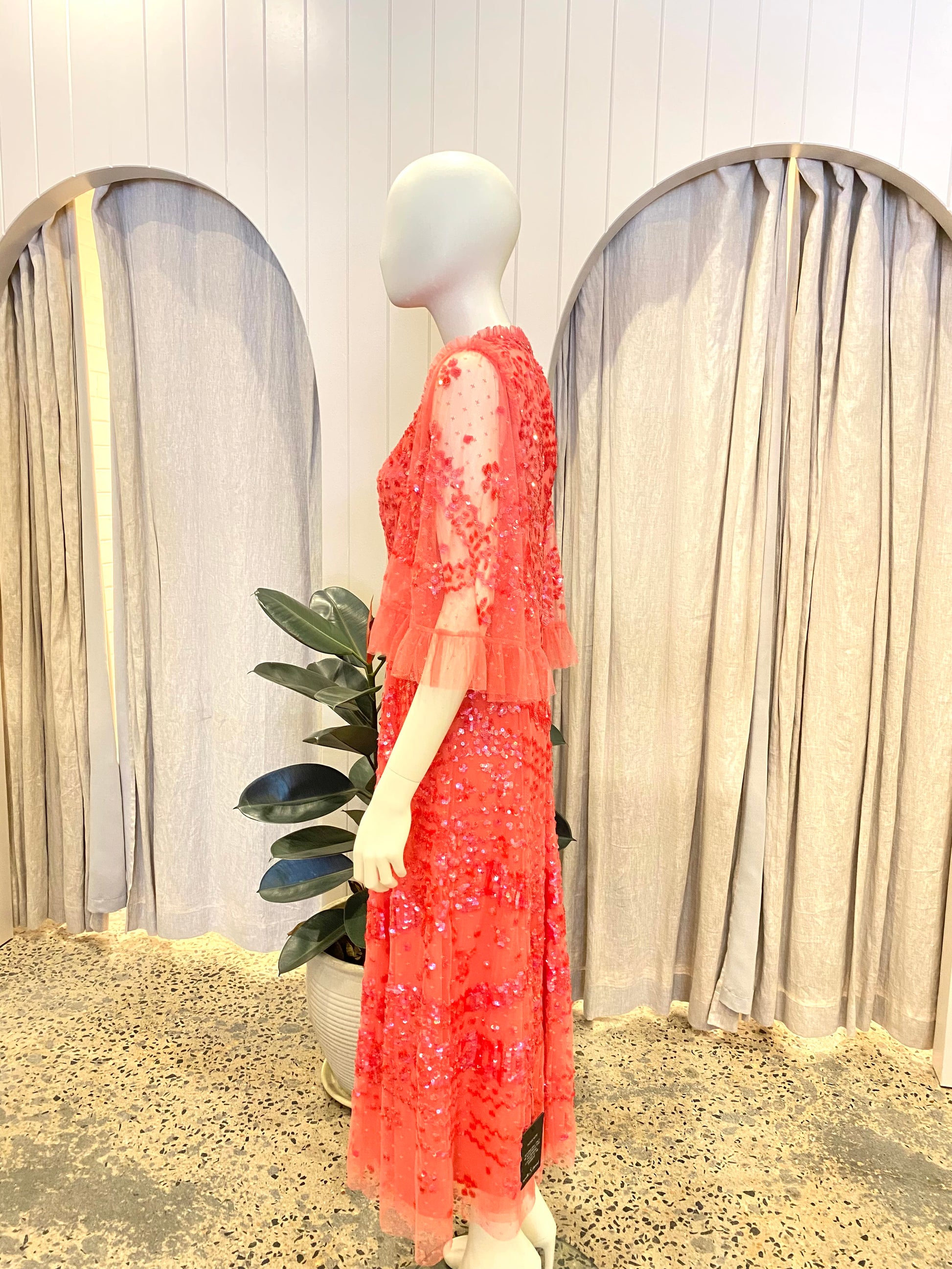 Needle & Thread Anais Sequin Gown in Watermelon Pink - Size 14