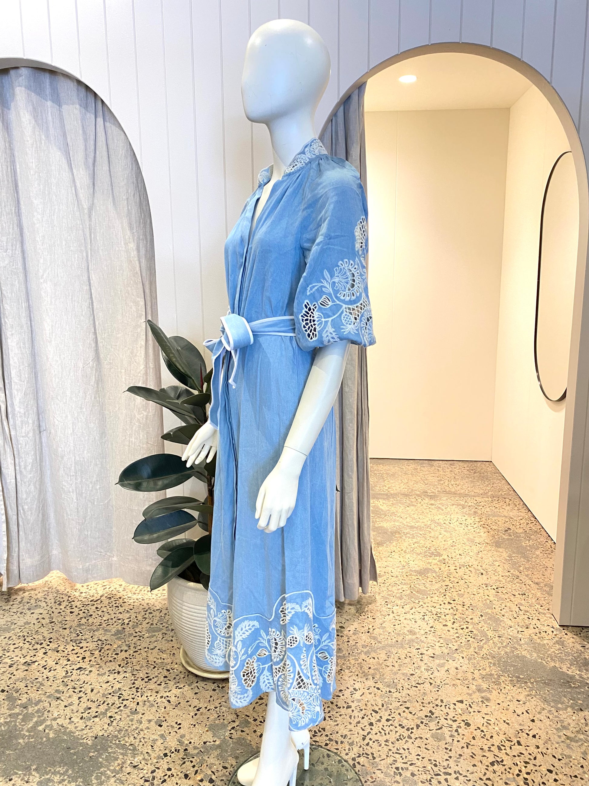Once Was Amara Tencel Embroidered Maxi Dress - Size 1
