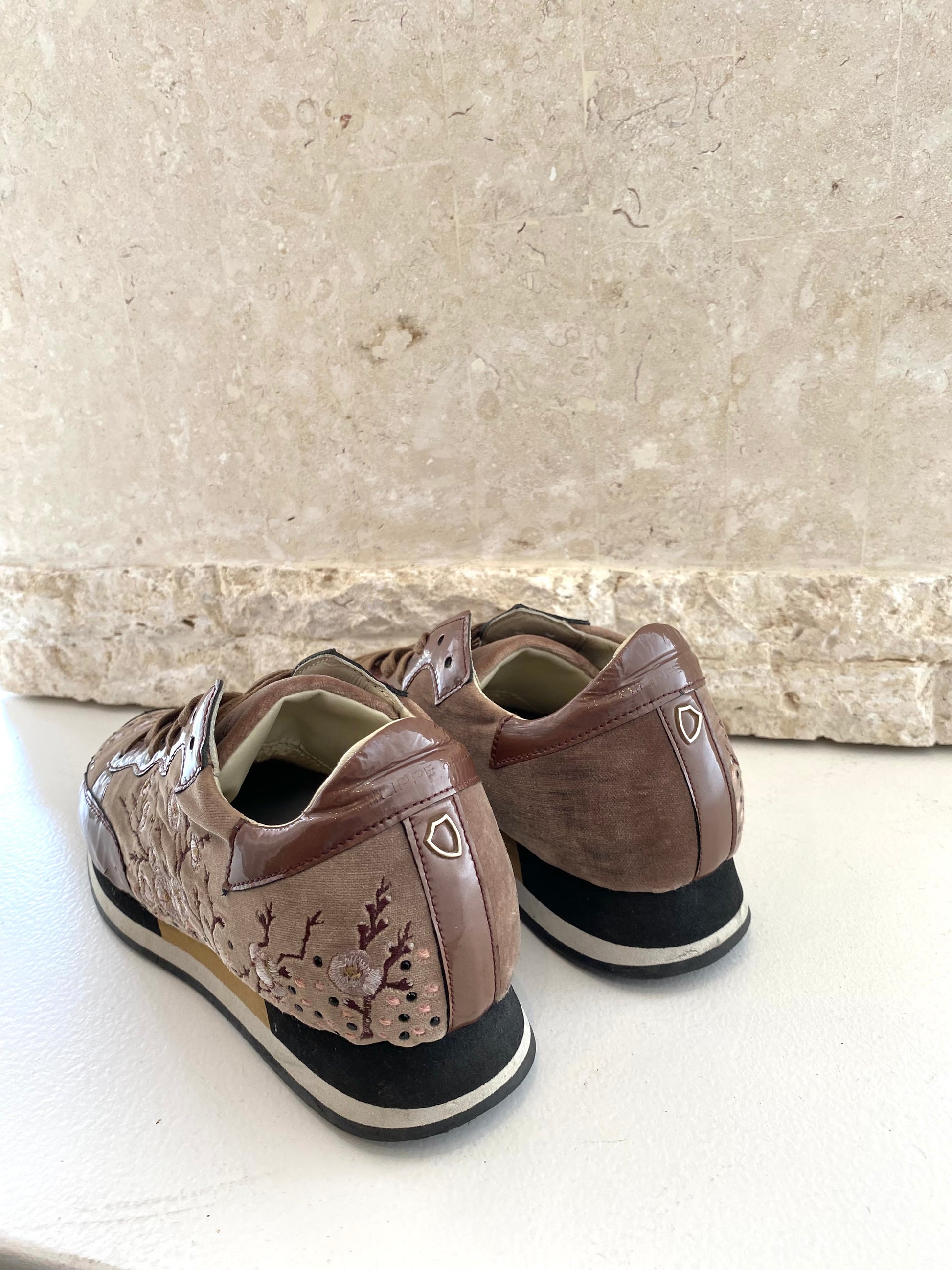 Description : - All over floral embroidery - Rhinestone embellishment - Rubber sole